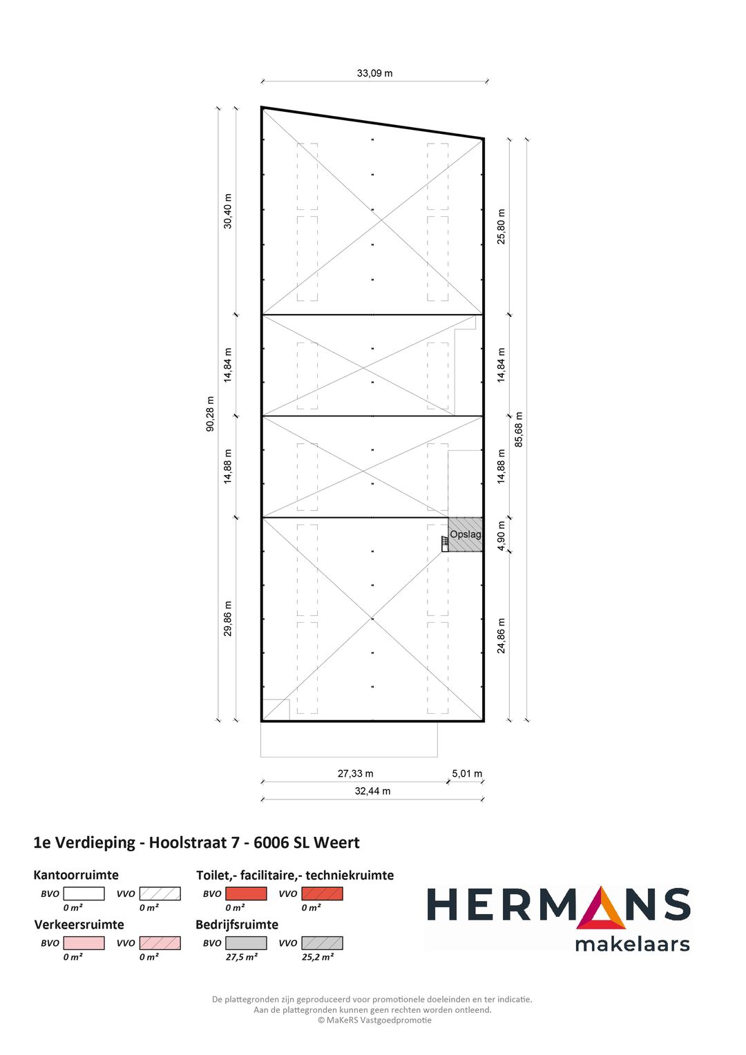- Zware betonvloer aanwezig, capaciteit circa 3 kN/m2;