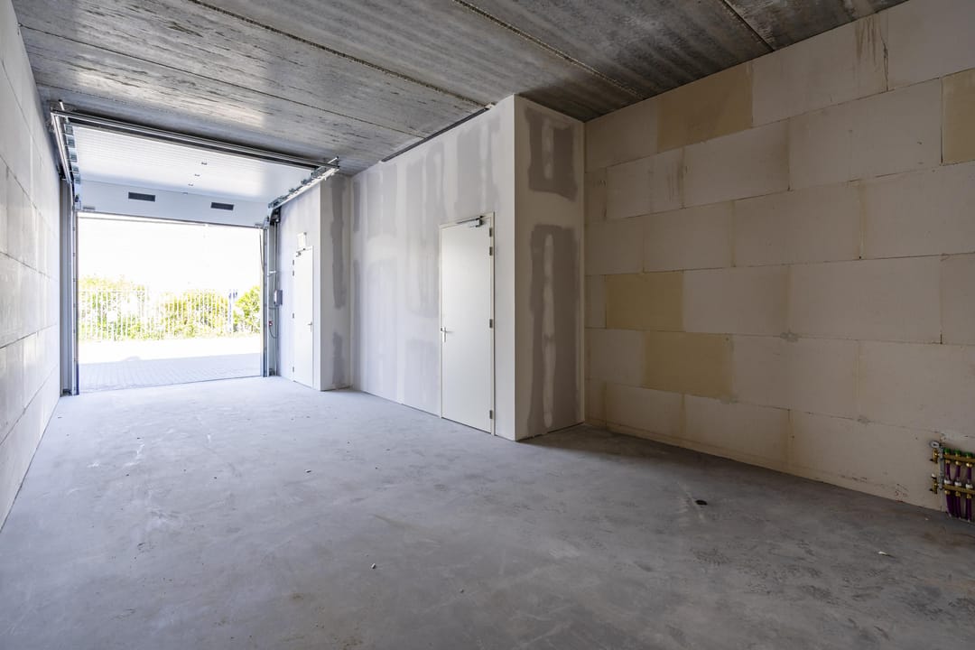 De oplevering is een CASCO PLUS en is al voorzien van vloerverwarming met warmtepomp, zonnepanelen, afgewerkte vloeren, elektrische bedienbare overheaddeur e.d.