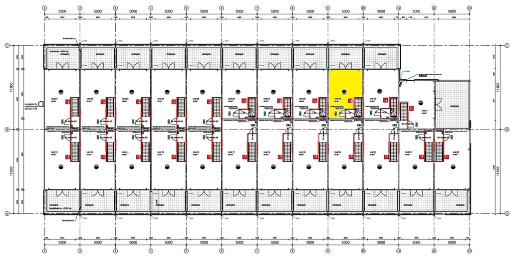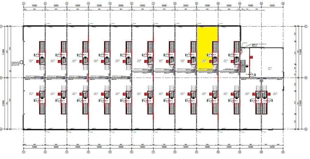 De bedrijfsunit zal in casco staat inclusief de navolgende voorzieningen worden opgeleverd: