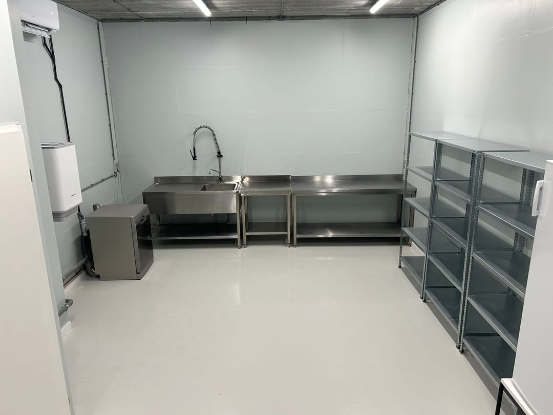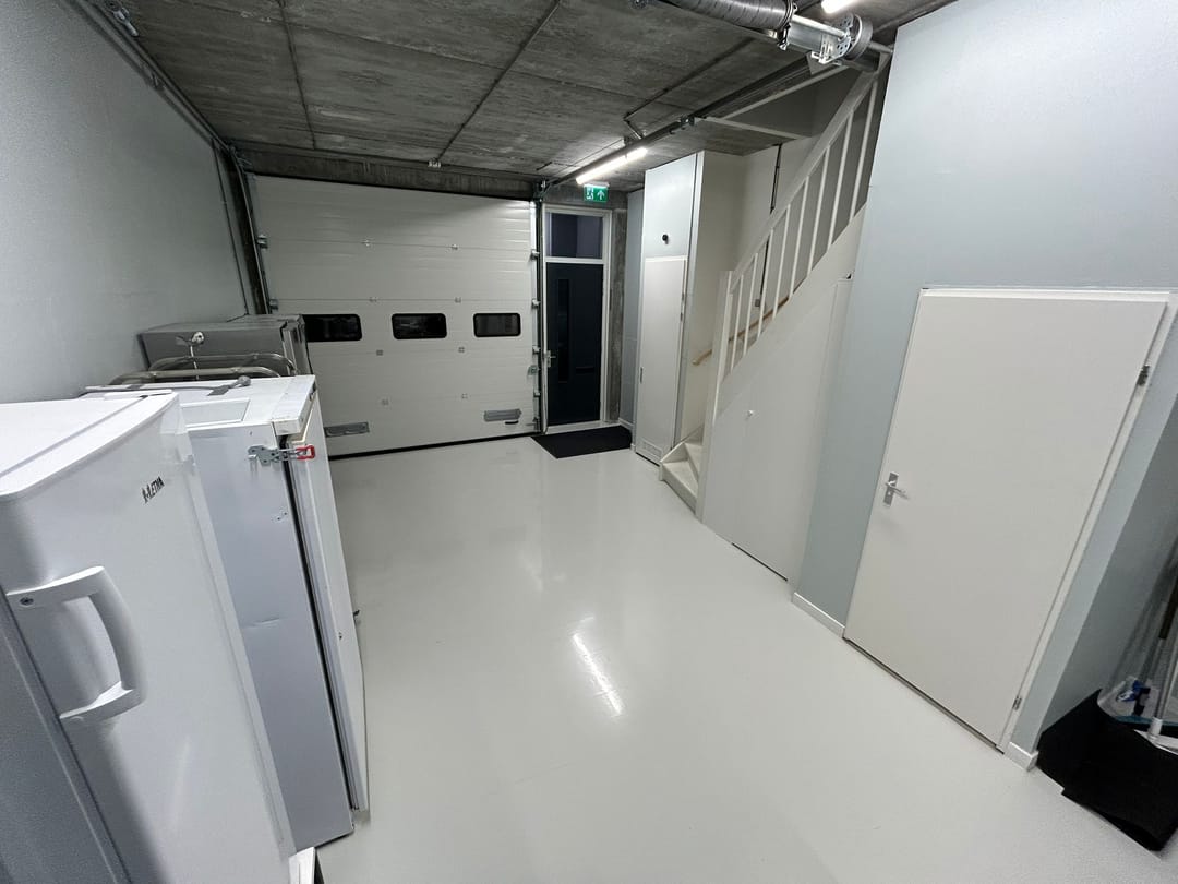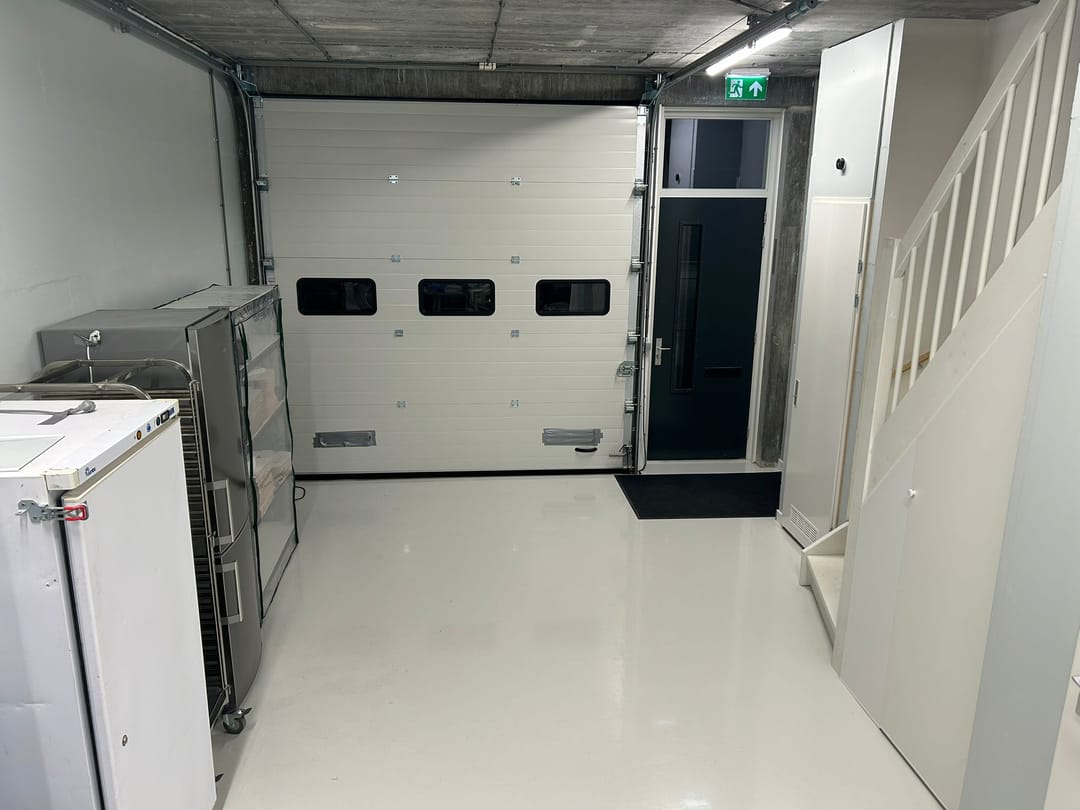- Overheaddeuren, betonvloer, toilet, pantry, airconditioning, inbouwarmaturen en te openen ramen