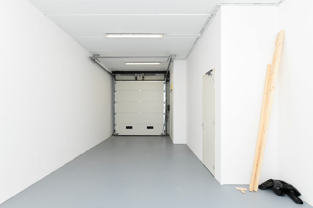 Elektrische overheaddeur met een vrije hoogte van circa 3,0 meter en een breedte van circa 2,7 meter.
