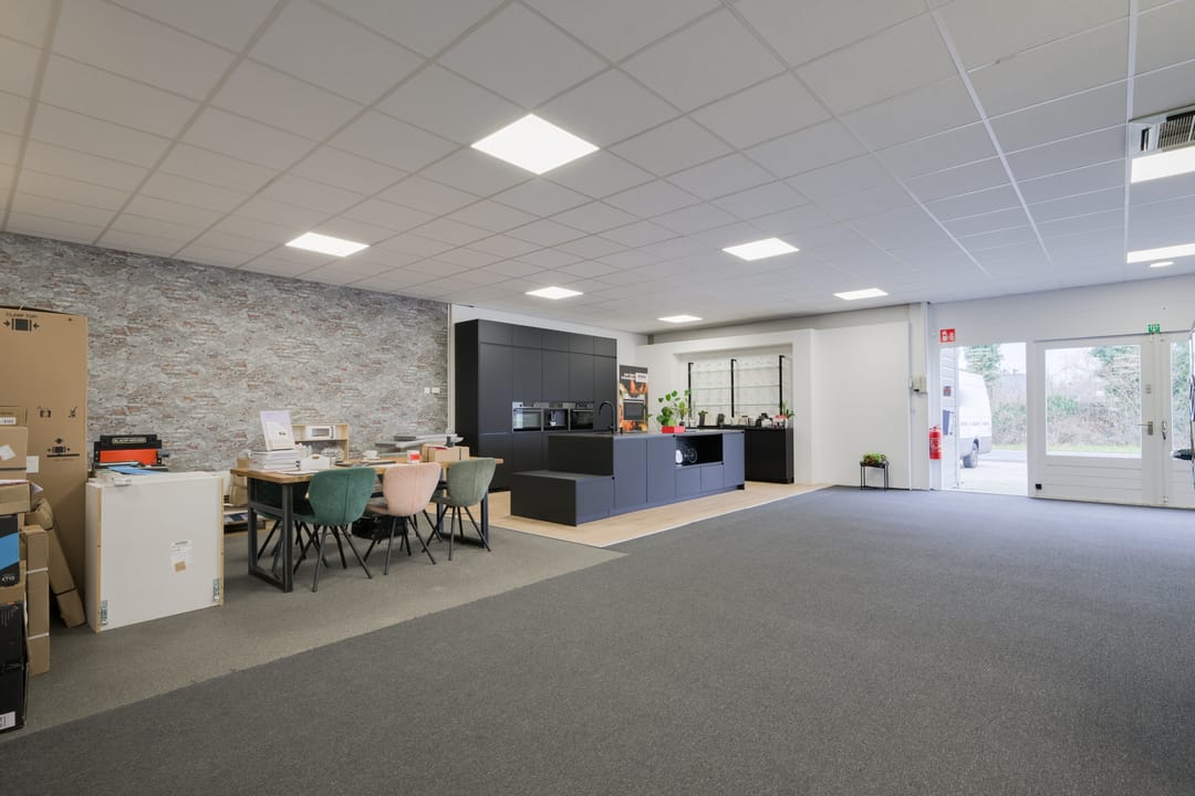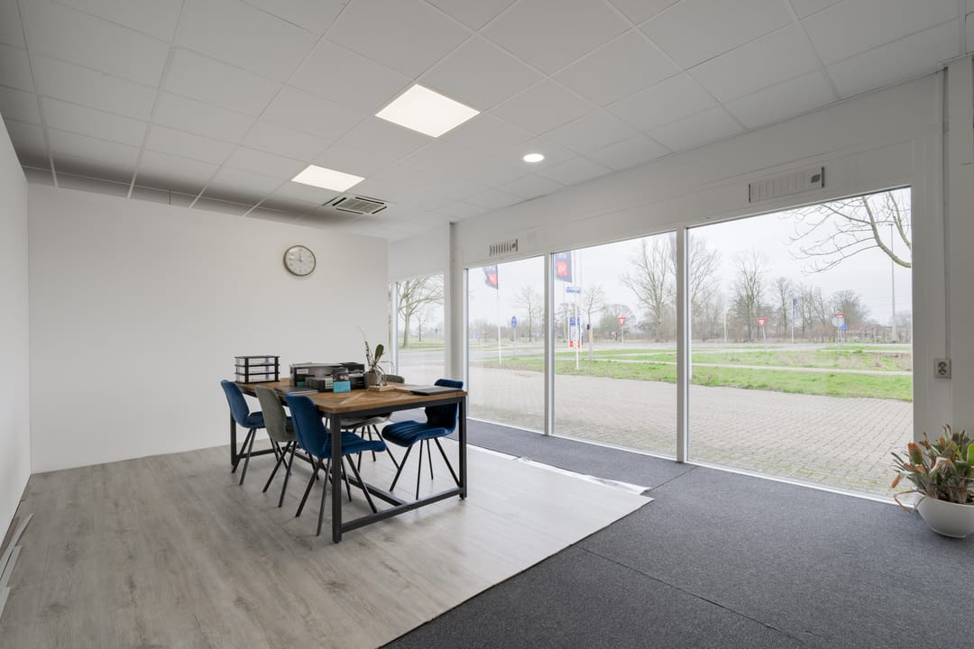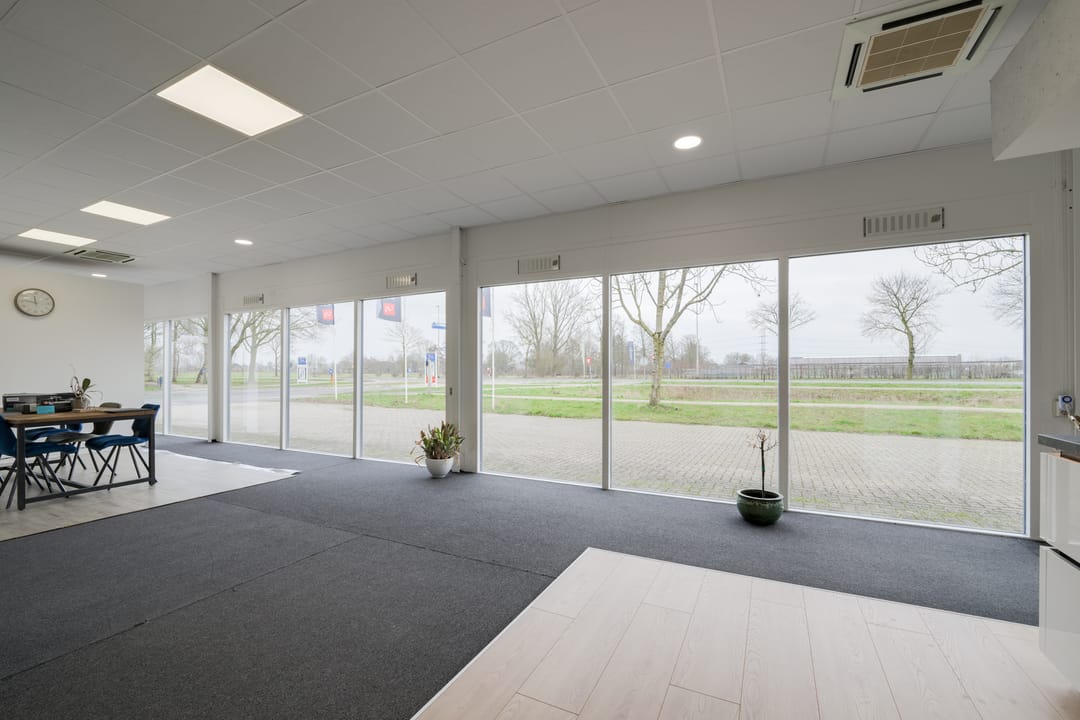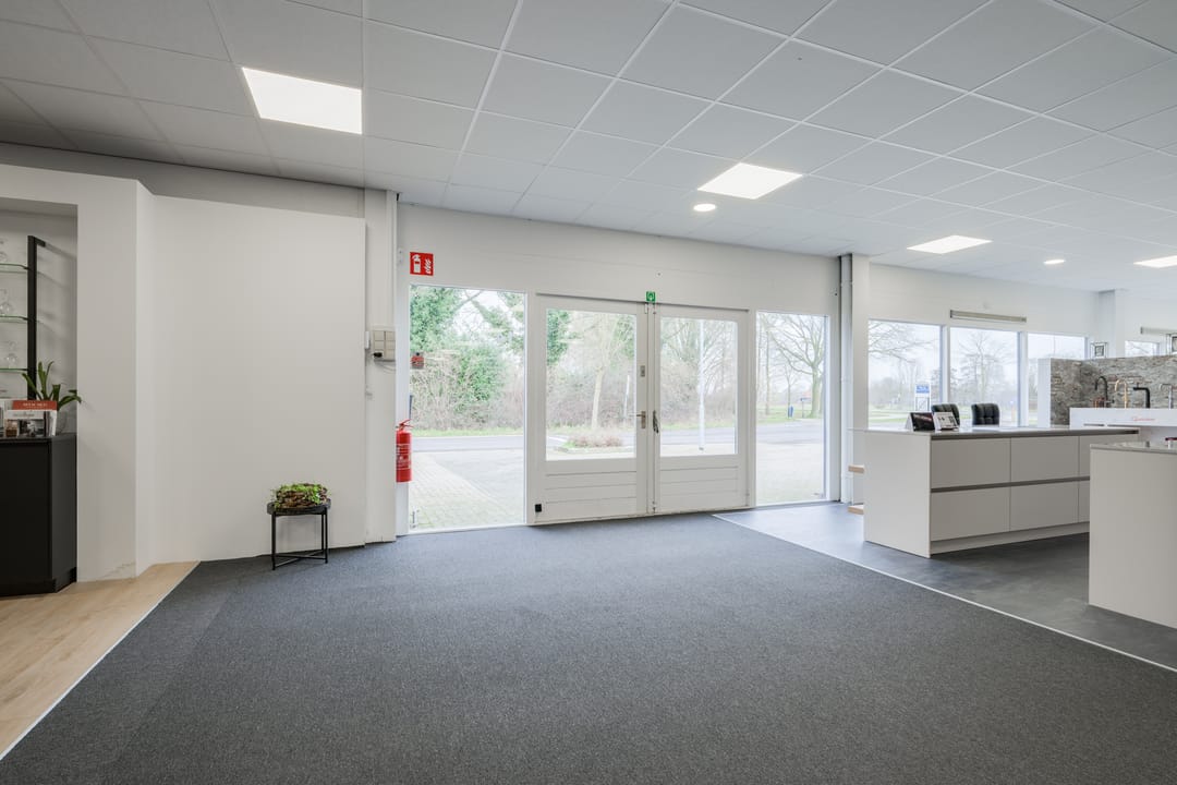 Bieden wij deze showroom met royaal buitenterrein en voldoende parkeergelegenheid aan.