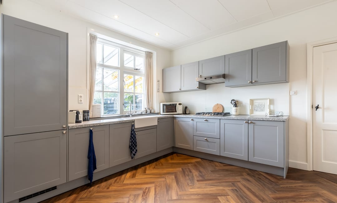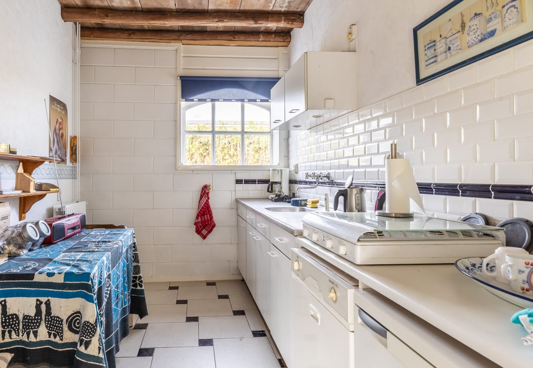 Verder is er een keukentje met Quooker kraan en toilet, van waaruit een kleine afgesloten ruimte met meterkast, vaatwasser en CV ketel (ca. 2005) bereikbaar zijn.