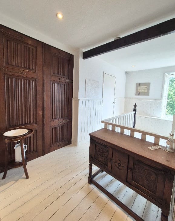 De grotendeels gerenoveerde boerderij beschikt over een aparte annex die geschikt is als praktijkruimte of gastenverblijf. Elk heeft een eigen entree, maar is onderling bereikbaar via een afsluitbare tussendeur.
