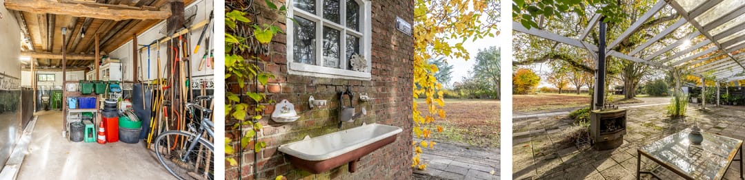 De 3 loodsen kunnen bedrijfsmatig gebruikt worden voor opslag en werk c.q. kantoorruimte. Het oude bakhuis bij de woning, nu een mooie schuur, was voorheen een stal.