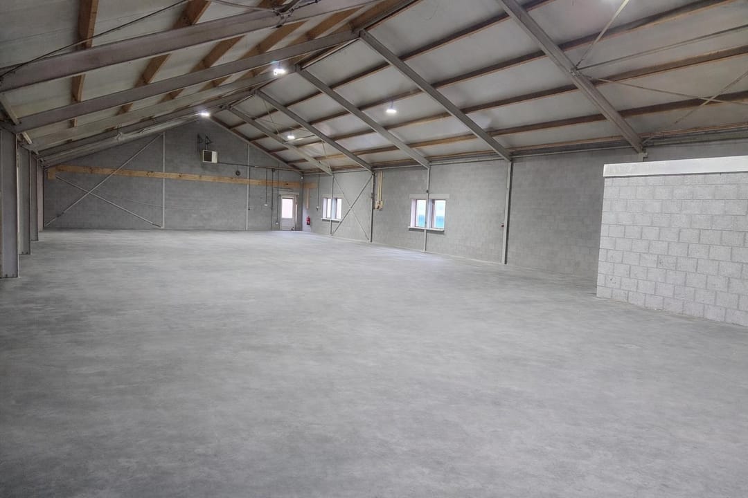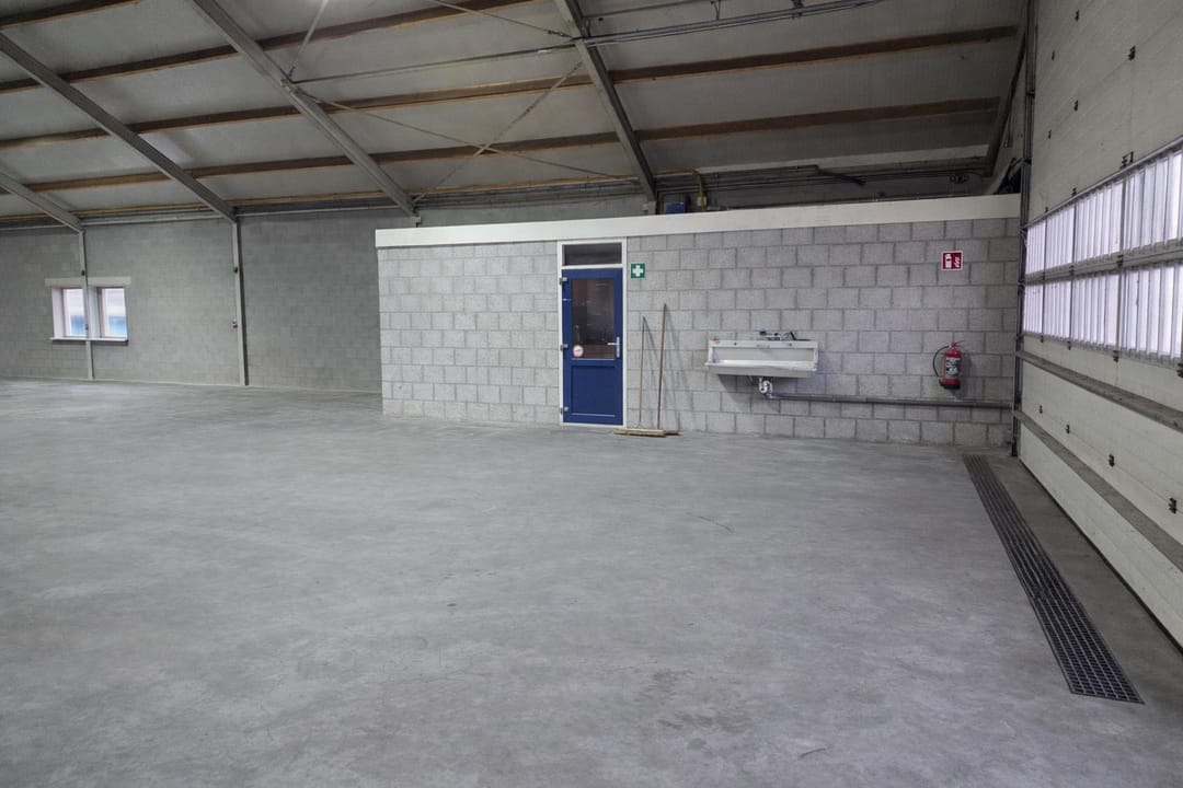 - Overheaddeuren, betonvloer, toilet en pantry