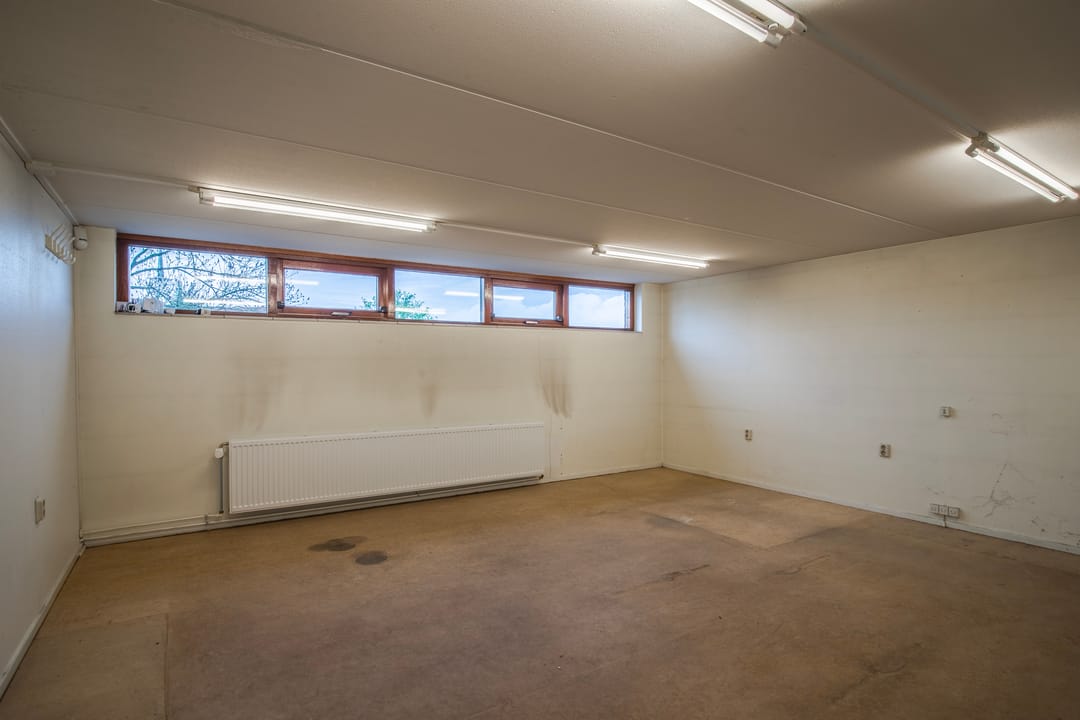 Het betreft een net pand geschikt voor diverse doeleinden met overheaddeur en afgesloten parkeerterrein.