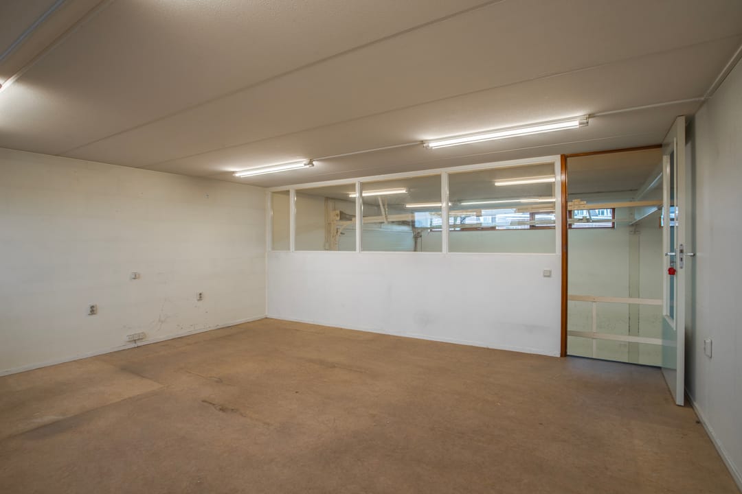 Circa 167 m2 bedrijfsruimte op de begane grond en ca. 50 m2 kantoor en een opslagruimte (25 m2) op de 1e verdieping.