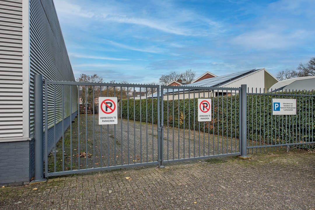 - Stalen toegangspoort t.b.v. deels afgesloten buitenterrein rechts