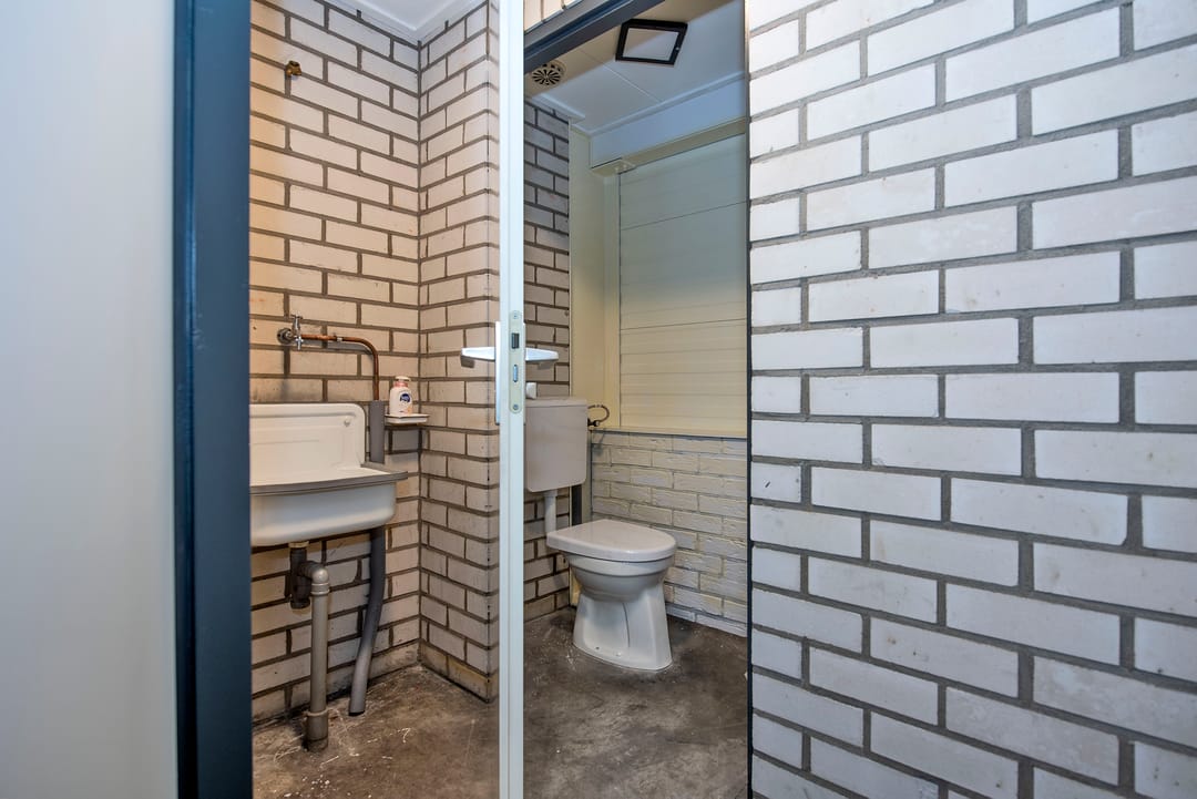 - Overheaddeuren, krachtstroom, betonvloer, heater en toilet