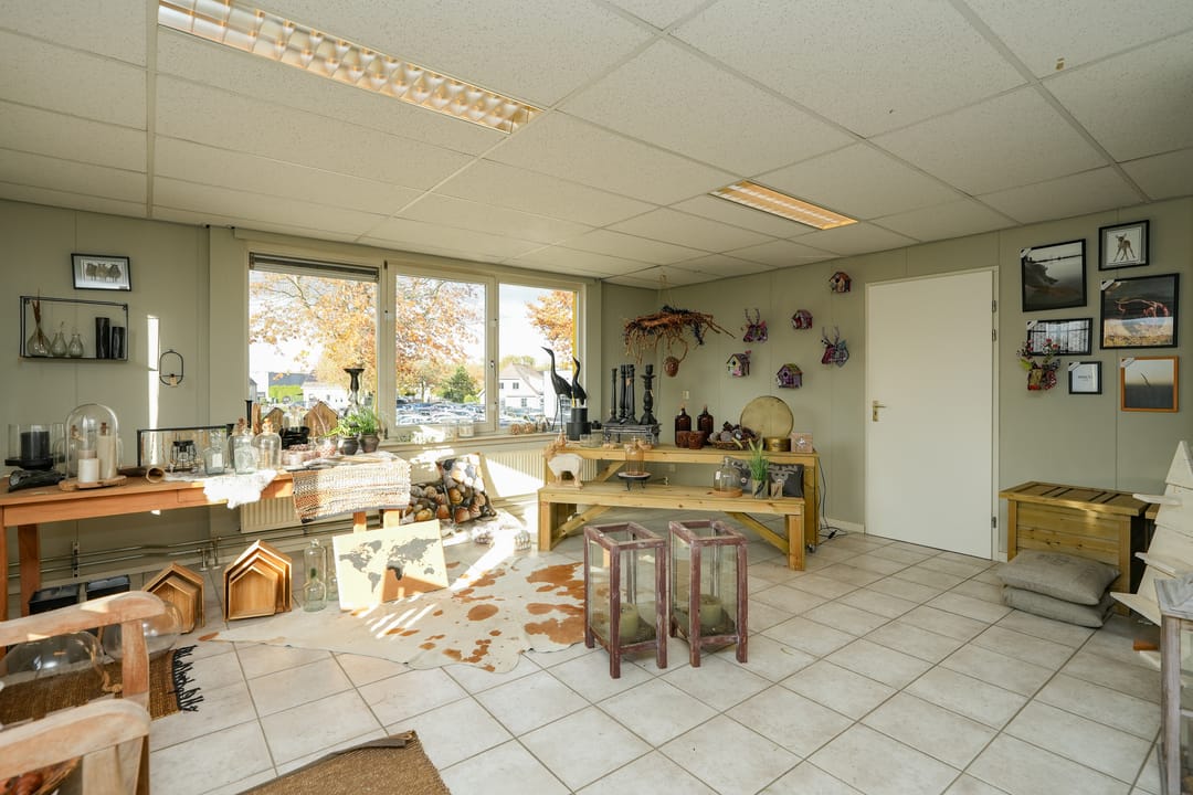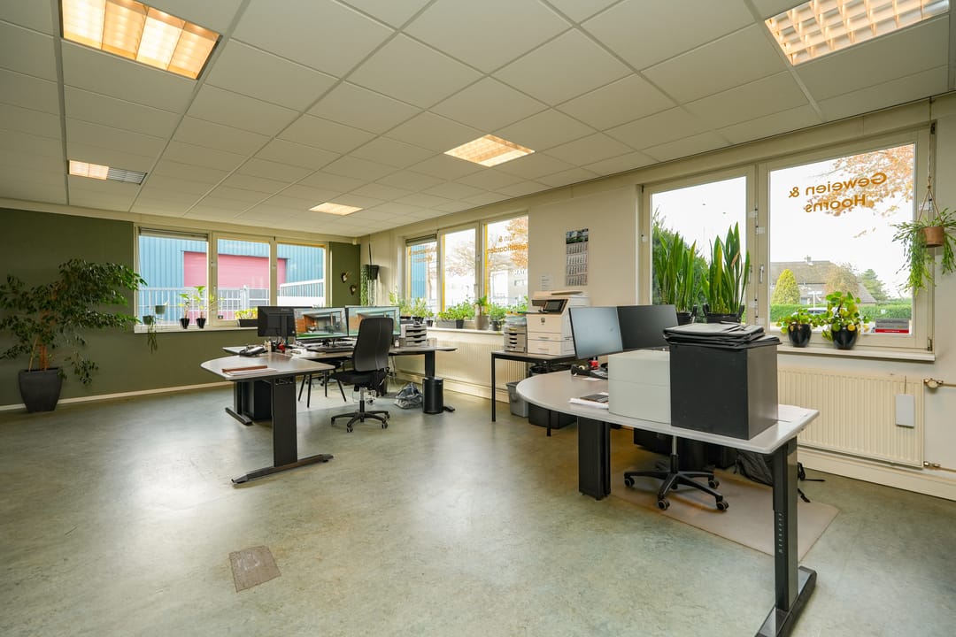 - Lichtstraten, overheaddeuren, krachtstroom, betonvloer, heater, toilet, pantry, inbouwarmaturen en te openen ramen