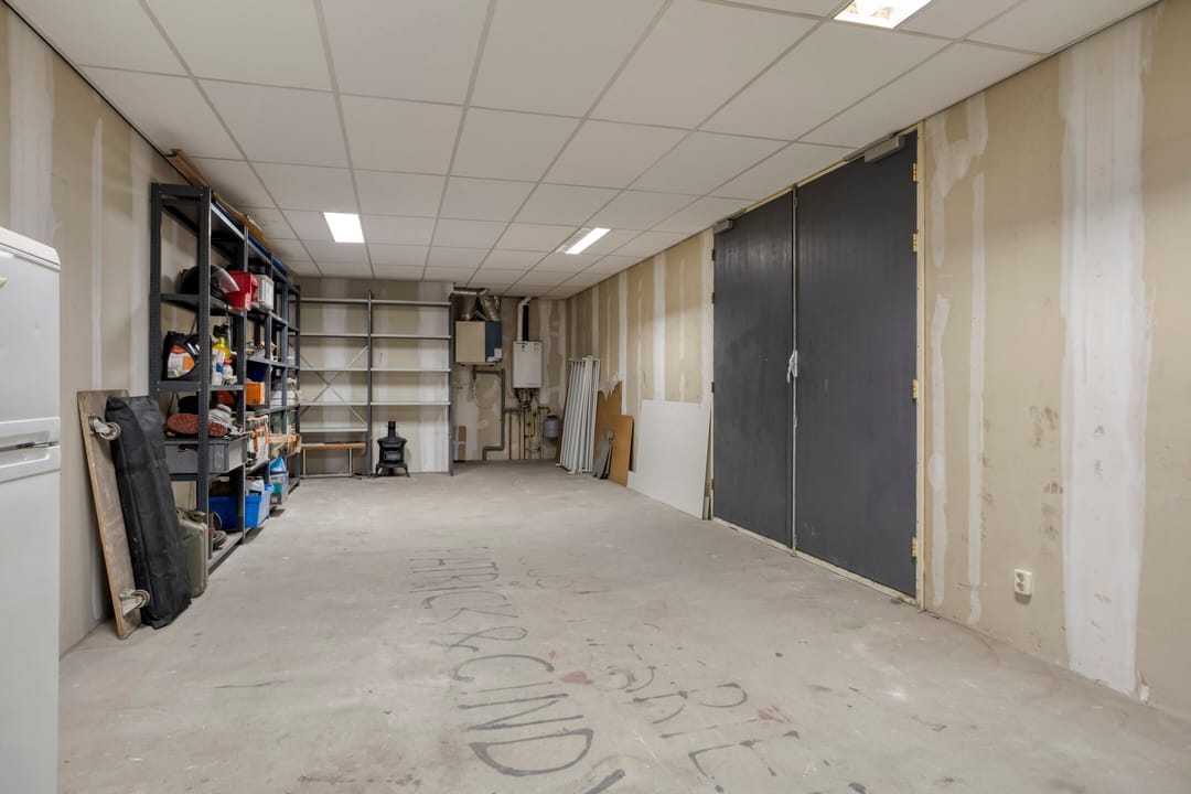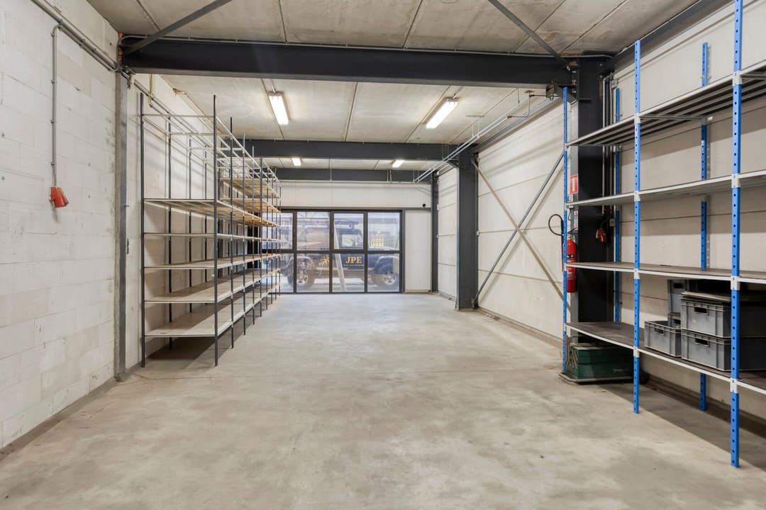 - Overheaddeuren, krachtstroom, betonvloer, heater, inbouwarmaturen en te openen ramen