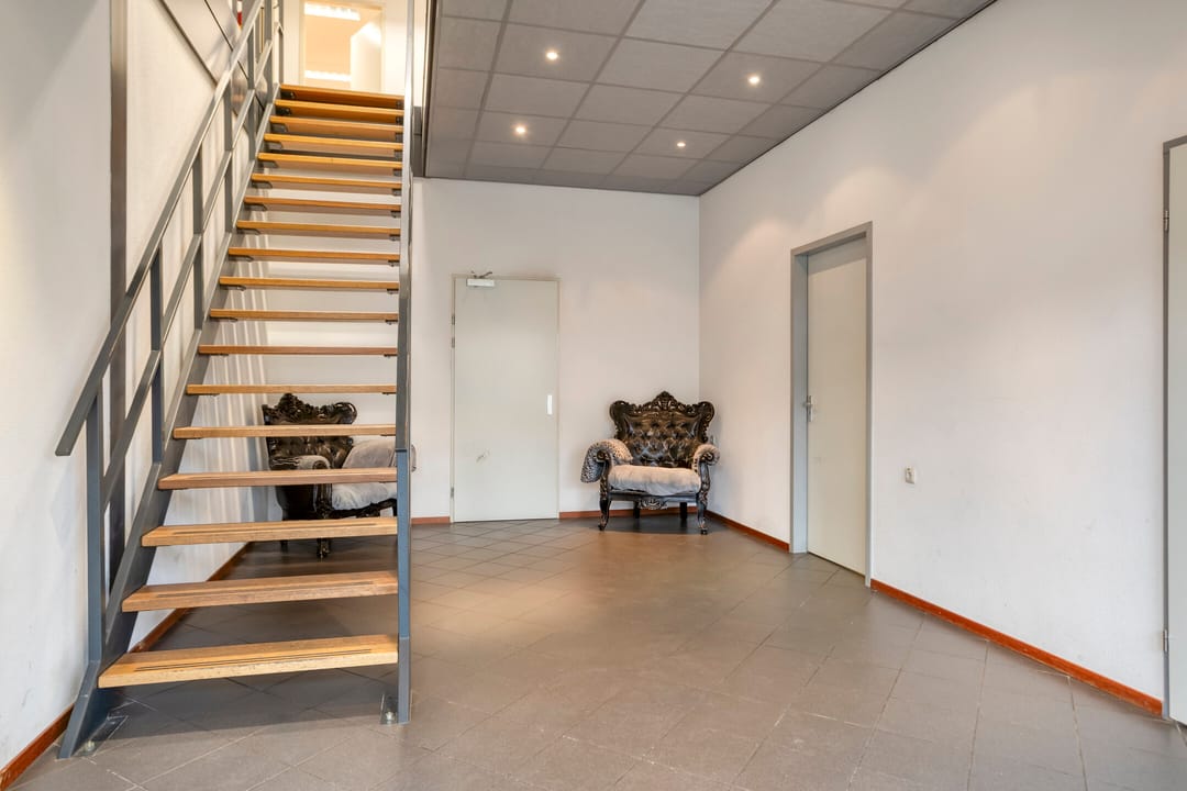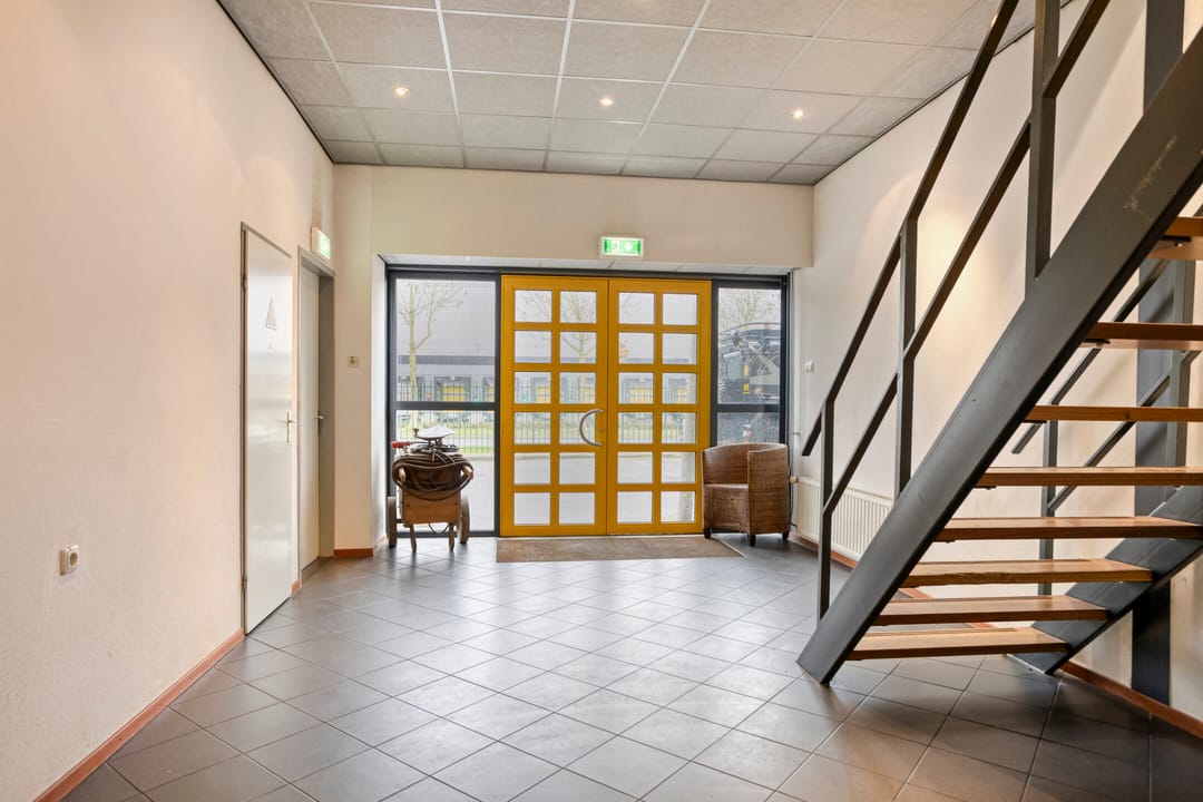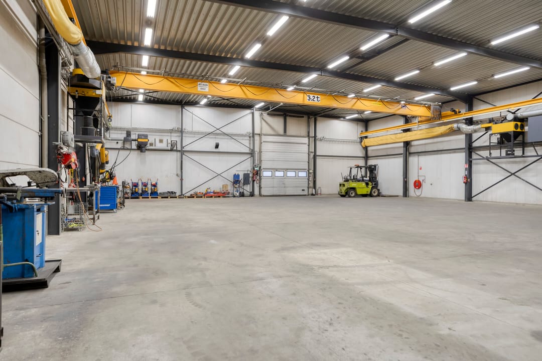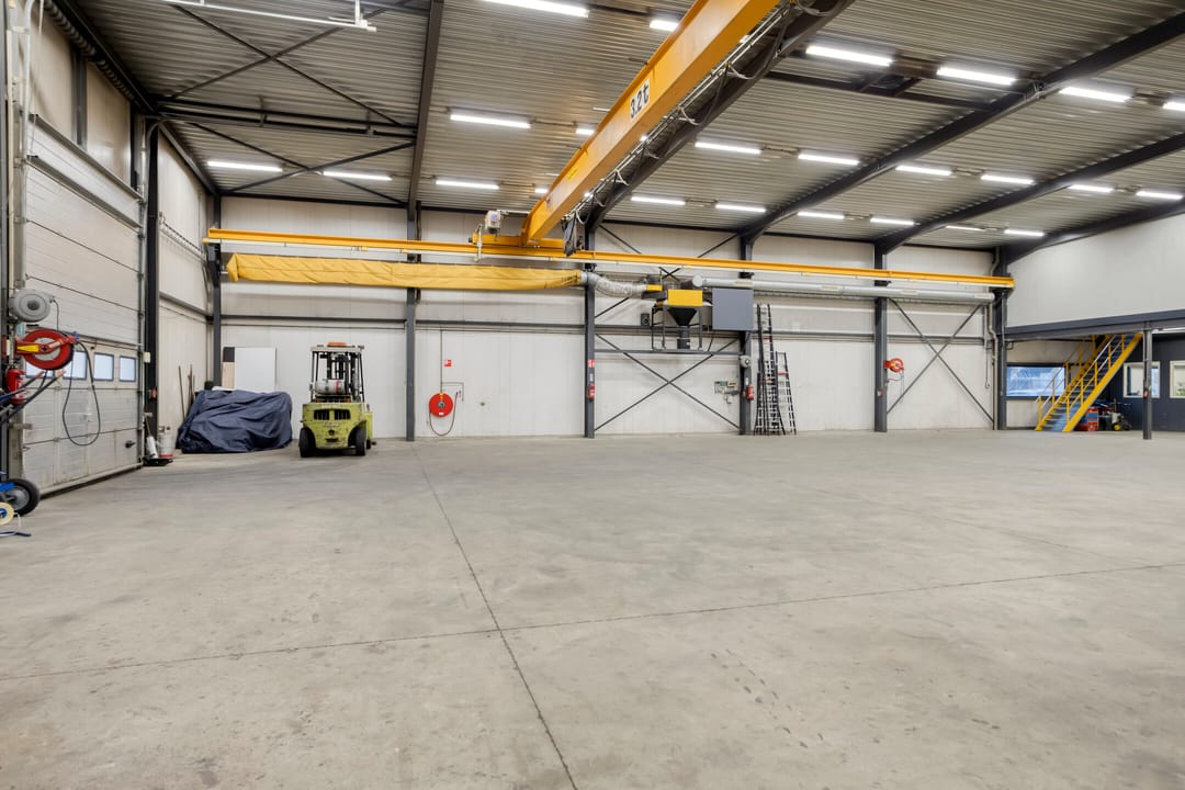 De bedrijfshal is zeer functioneel ingedeeld met een praktische rechthoekige footprint bestaande uit volledig "vrij overspannen" bedrijfsruimte voorzien van onder andere een kraanbaan (3.2 t) en een maaiveld deur aan de achterzijde. De bedrijfshal beschikt over een vrije hoogte van ca. 6,25 m1 en hoogte tot aan het dak van ca. 6,70 m1. Aansluitend aan de bedrijfshal is aan de voorzijde een kleinere aanvullende werkplaats/magazijnruimte gesitueerd. De overige invulling van het object bestaat hoofdzakelijk uit kantoor- en secundaire ruimtes welke zijn gelegen aan de voorzijde van het object en zijn verdeeld over twee bouwlagen.