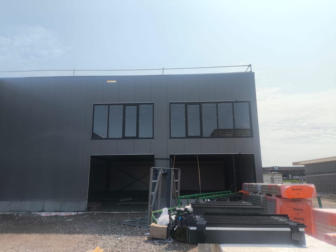 - Zonnepanelen op het dak (ca.7 per bedrijfsunit);