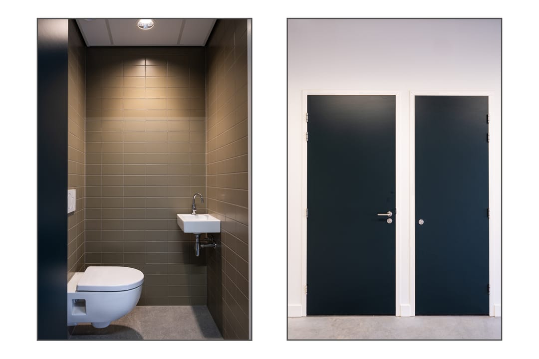 - Overheaddeuren, toilet, pantry, mechanische ventilatie, topkoeling en te openen ramen
