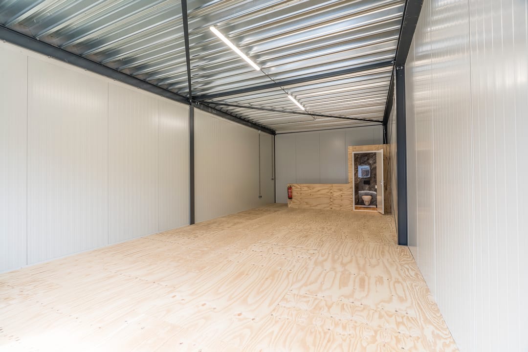 - Overheaddeuren, betonvloer en toilet