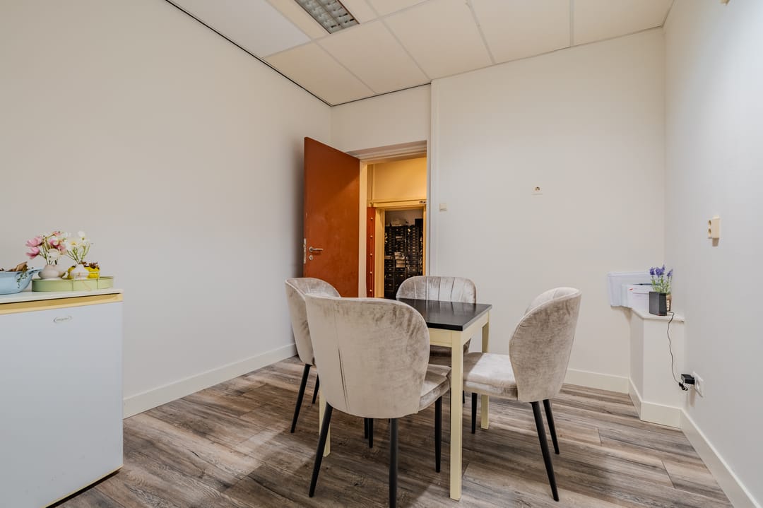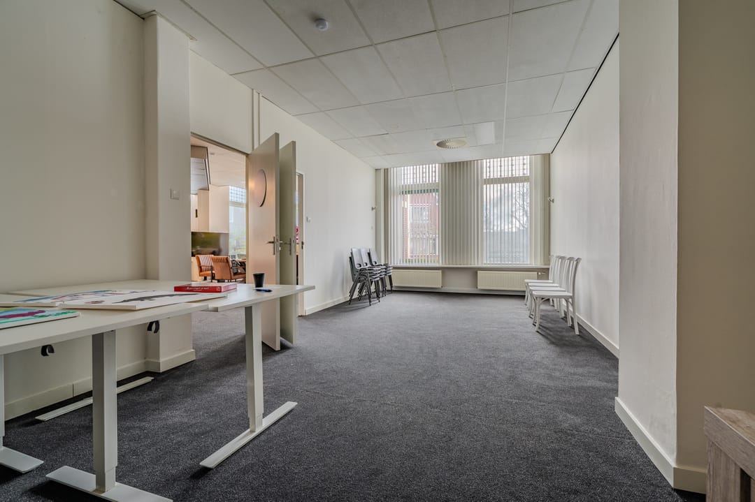 De begane grond bestaat uit een ruime commerciële ruimte die geschikt is voor onder andere dienstverlenende bedrijven, maatschappelijke instellingen of kantoorfuncties. Het kantoorgedeelte is volledig nieuw gerealiseerd en beschikt over meerdere kantoorruimtes en vergaderruimtes. Daarnaast is er een keuken aanwezig en zijn er meerdere toiletruimtes beschikbaar.