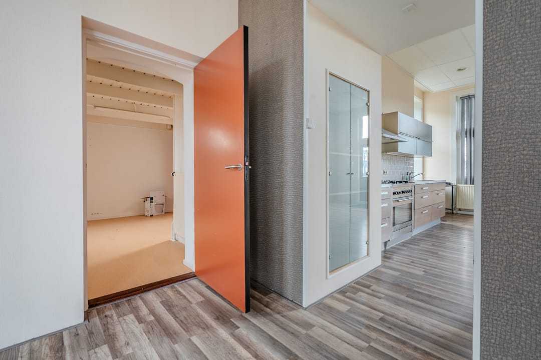 Op de eerste verdieping bevindt zich een gerenoveerd appartement/woonruimte. Daarnaast biedt het object mogelijkheden voor het realiseren van extra woonruimte of een tweede appartement. (Torenstraat 51 en 53)
