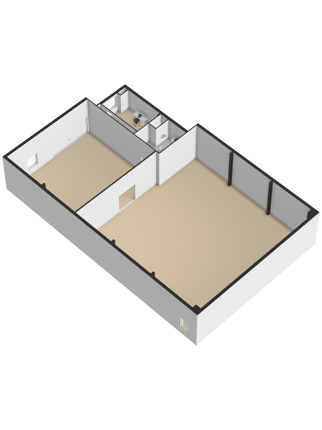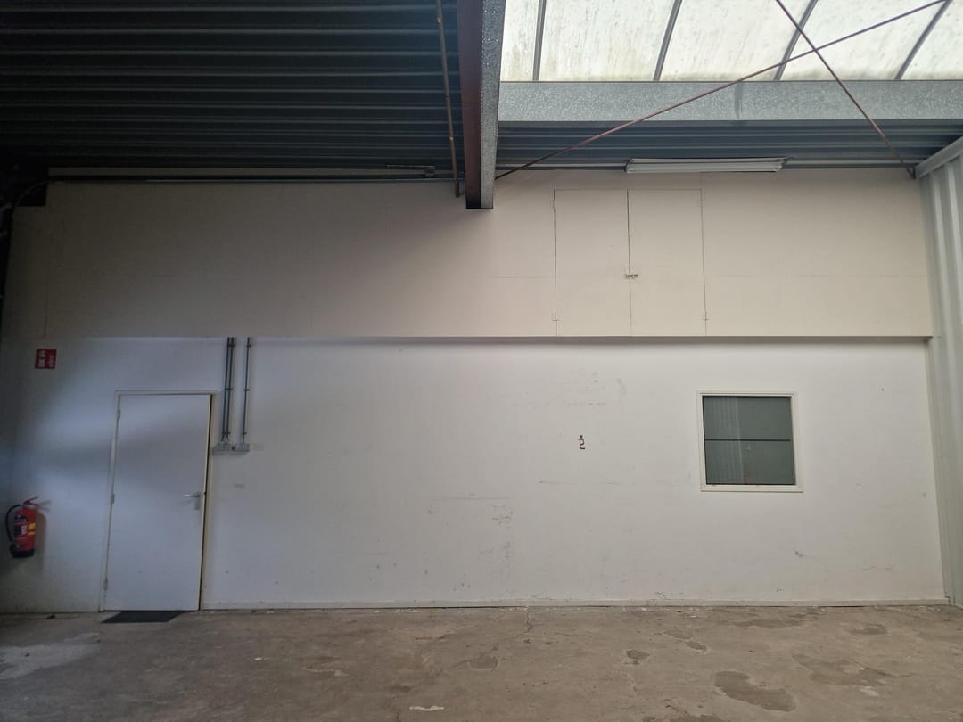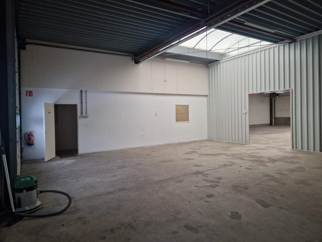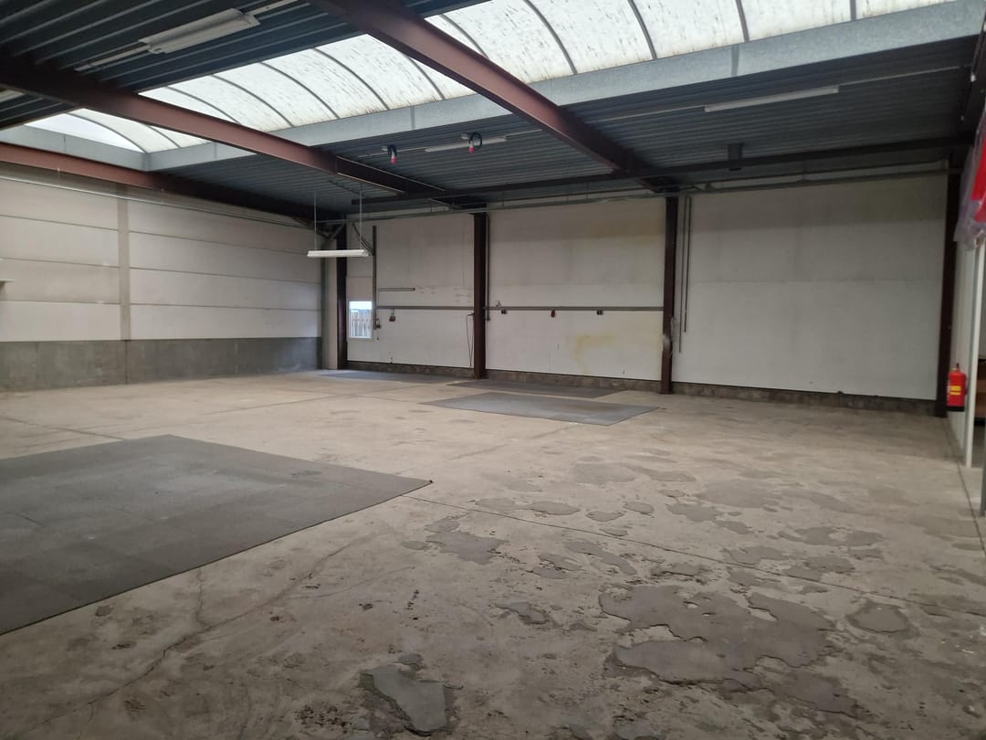 - Lichtstraten, overheaddeuren, krachtstroom, betonvloer, heater, toilet en pantry