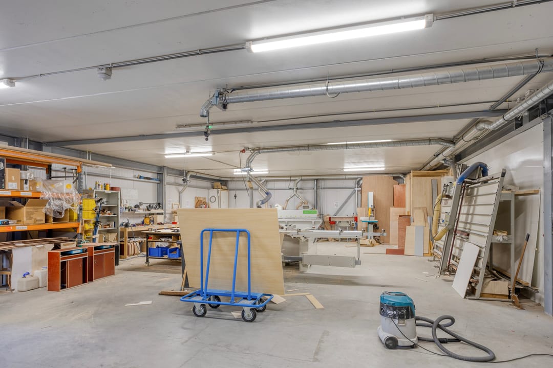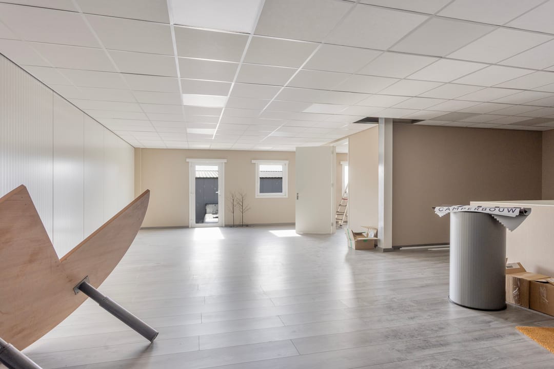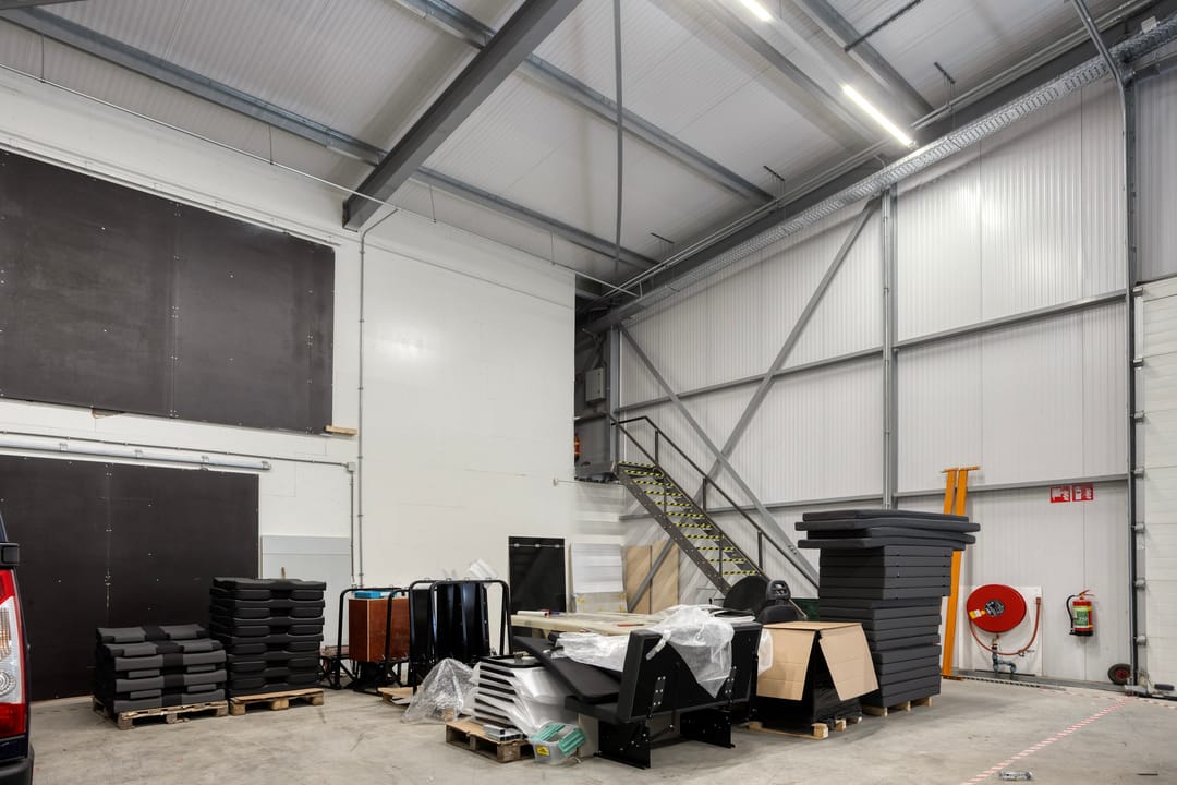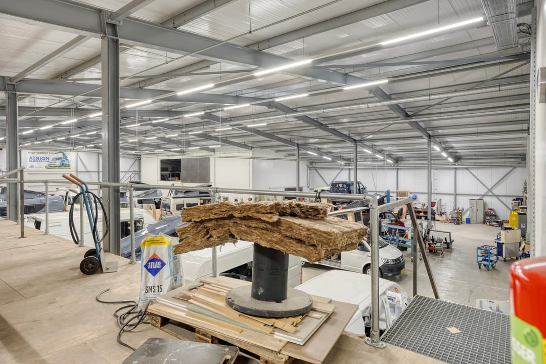 - Mechanische ventilatie, overheaddeuren, krachtstroom, betonvloer, toilet, pantry en inbouwarmaturen