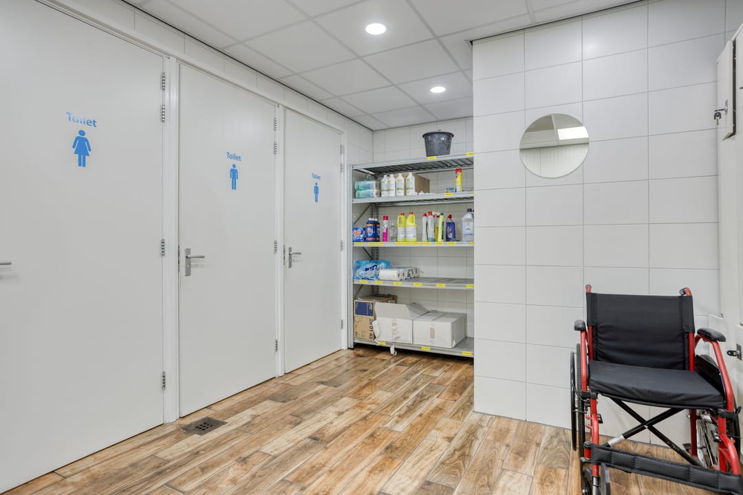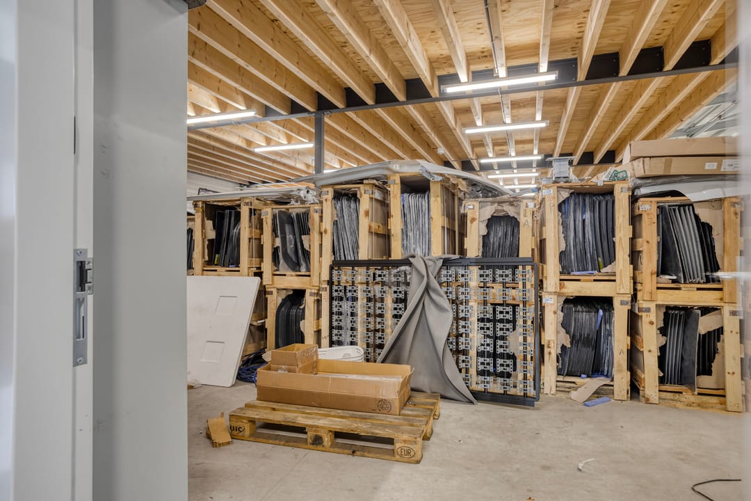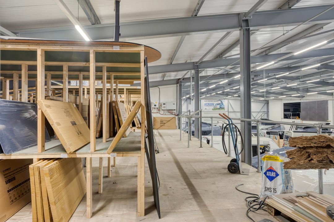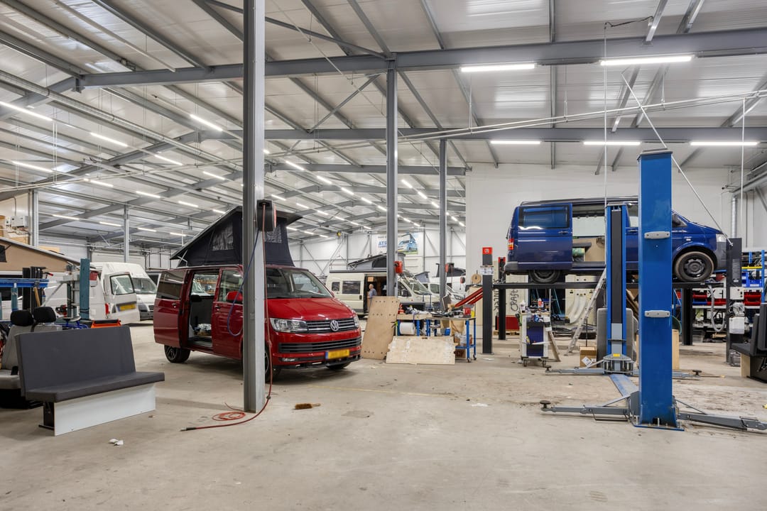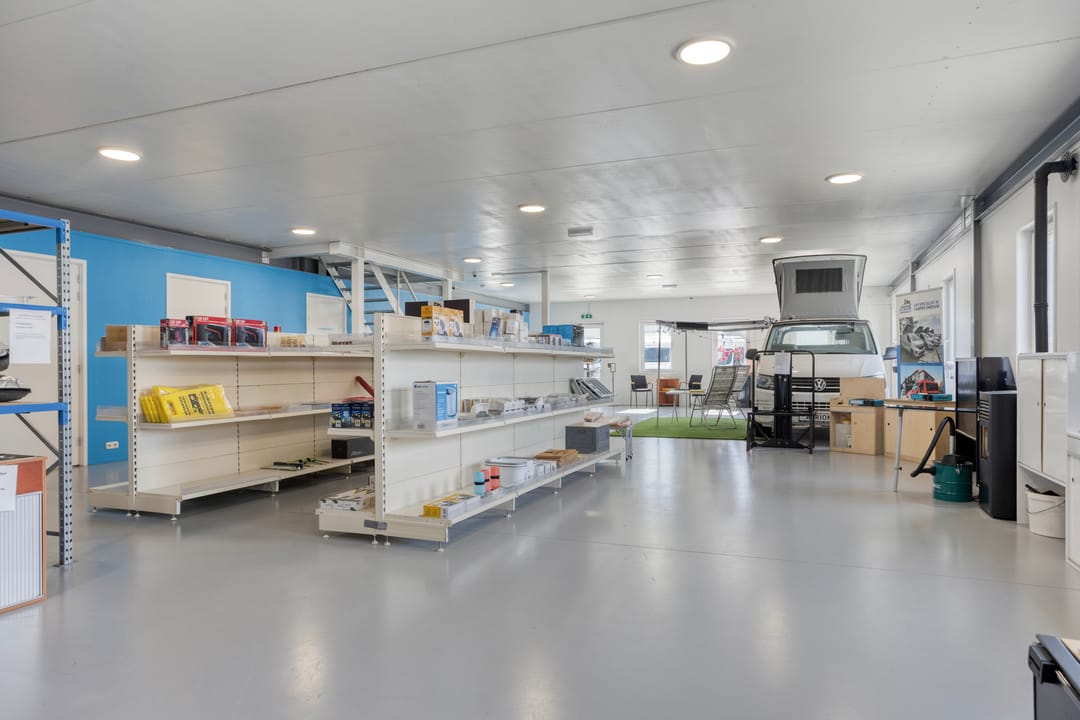 - Mechanische ventilatie, overheaddeuren, krachtstroom, betonvloer, toilet, pantry en inbouwarmaturen
