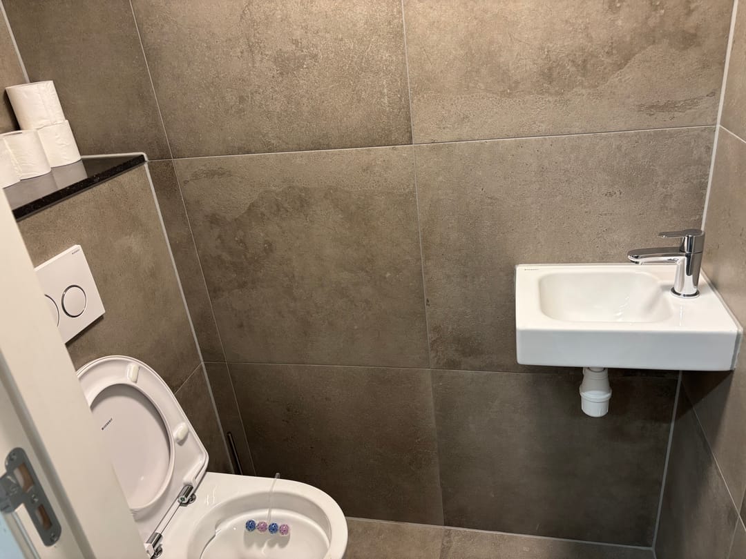 Via een aparte loopdeur is de bedrijfsunit bereikbaar waar ook een overhead deur aanwezig is, opslagruimte, fraai uitgevoerd toiletruimte, uitstort gootsteen en een vaste trap naar de 1e verdieping.