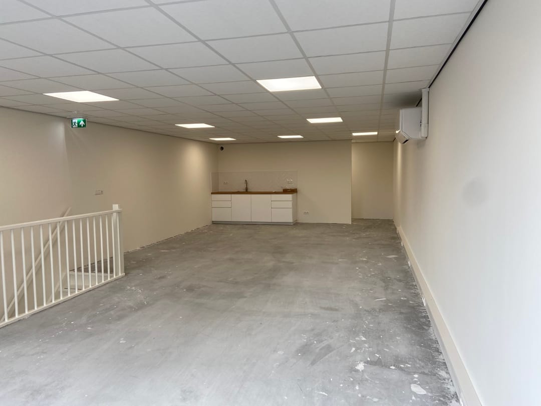 - Airconditioning, mechanische ventilatie, overheaddeuren, betonvloer, toilet, pantry, inbouwarmaturen en te openen ramen