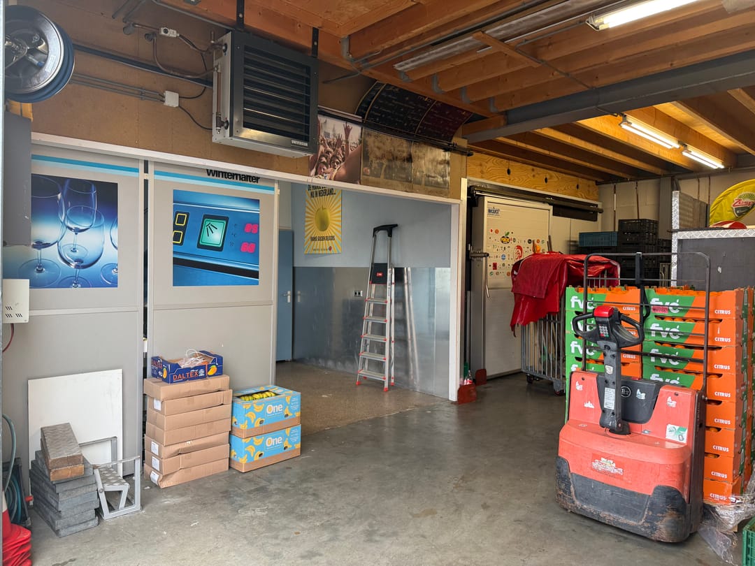 - Overheaddeuren, betonvloer, toilet en inbouwarmaturen