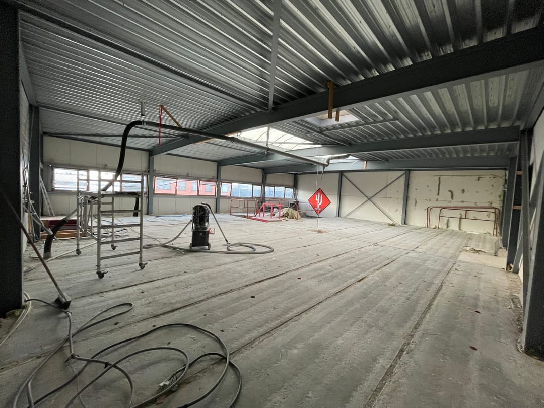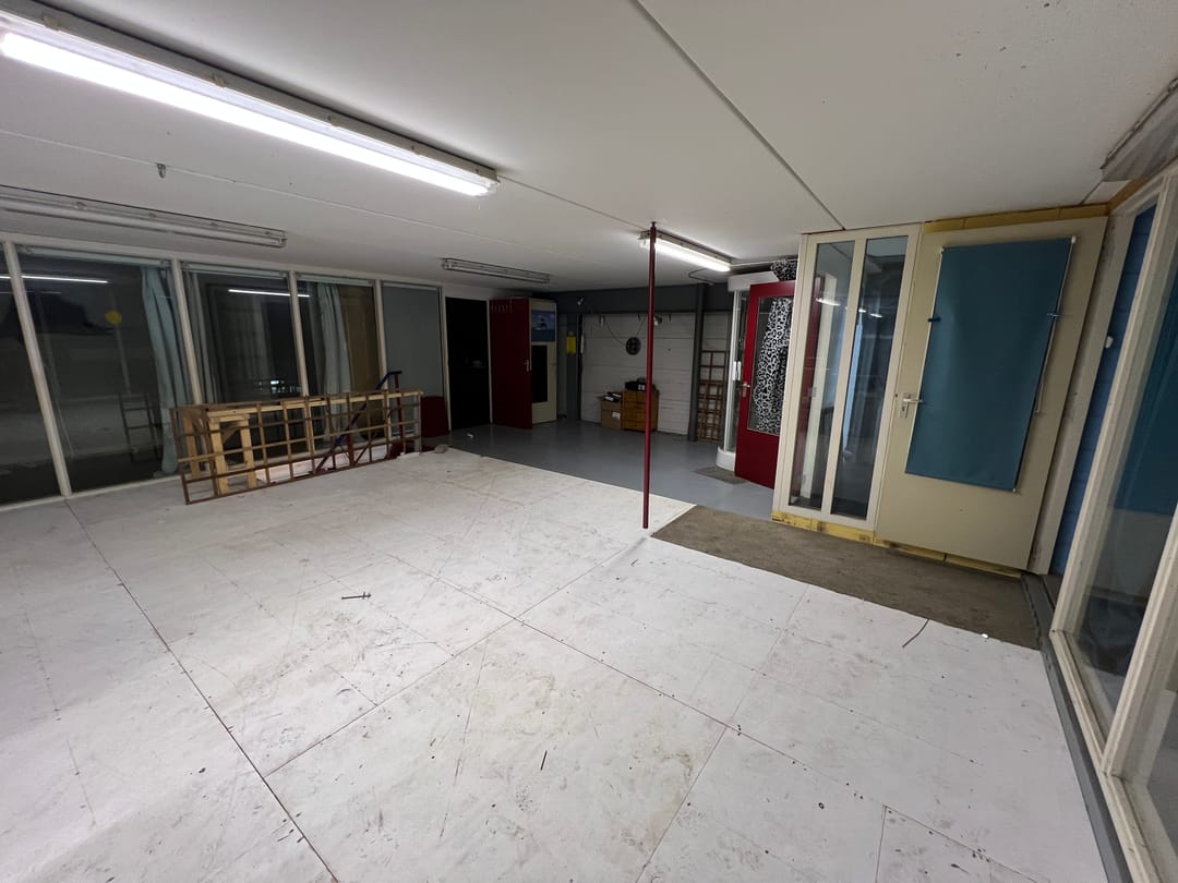 - Overheaddeuren, krachtstroom, betonvloer, toilet, pantry en te openen ramen