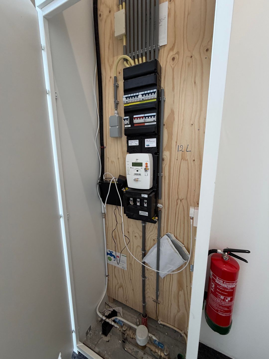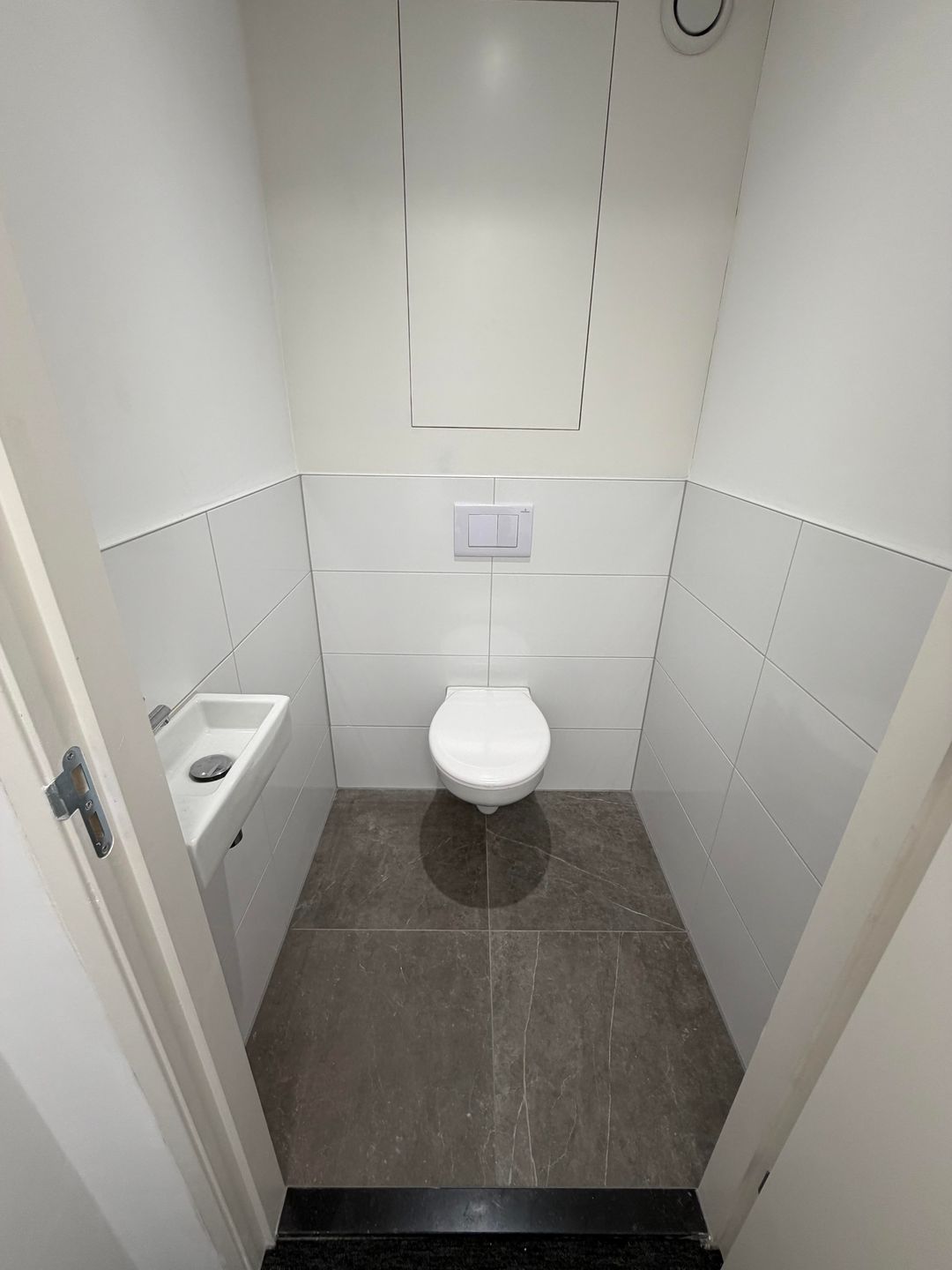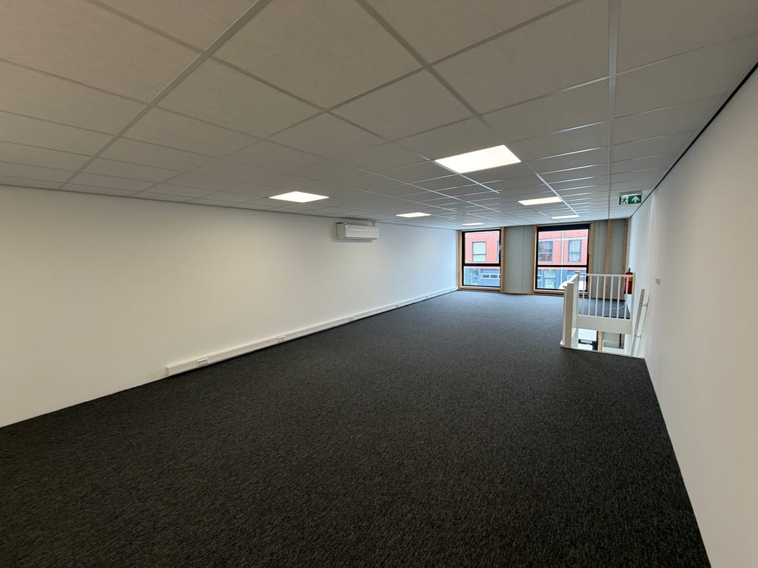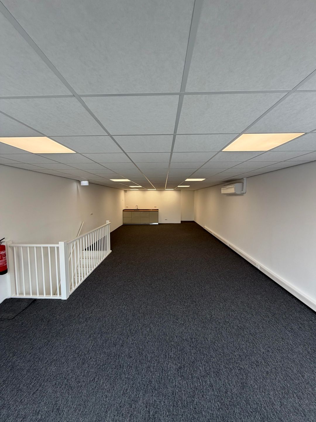 De 1e verdieping is afgewerkt met vloerafwerking, gladde wanden, een systeemplafond met inbouw LED verlichting, een split unit voor zowel verwarmen als koelen en een keukenblok met close in boiler. Er is geen gasaansluiting aanwezig.
