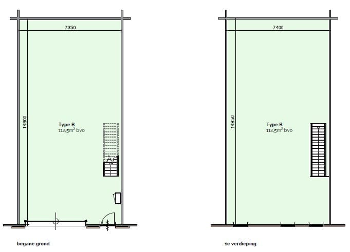 • betonvloer begane grond is geïsoleerd en monolithisch afgewerkt met een vloerbelasting van circa 1.500 kg/m²