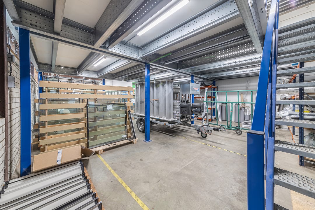Deze gunstig gelegen bedrijfsruimte bestaat uit een ruime opslag/werkplaats op de begane grond van ca. 213m² en een door de huidige huurder geplaatste tussenvloer van ca. 60m², te gebruiken als opslag of kantoorruimte. De begane grond heeft een vrije hoogte van ca. 4,59 meter. De ruimte beschikt over een pantry en toilet, krachtstroom, een elektrische overheaddeur van 4,20m hoog en 3,50m breed en een aparte loopdeur. Ideaal: voor het pand kunnen ca. 3 auto's geparkeerd worden.