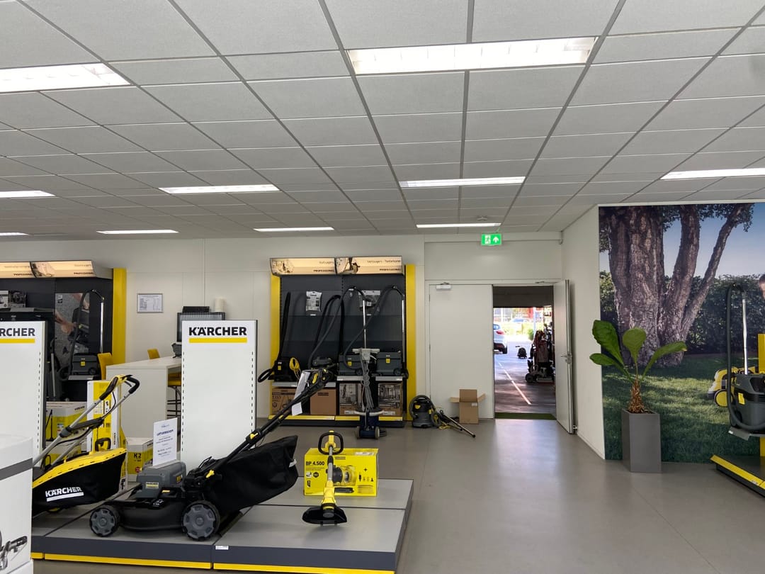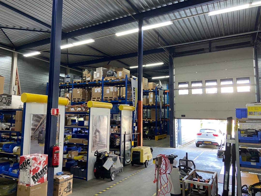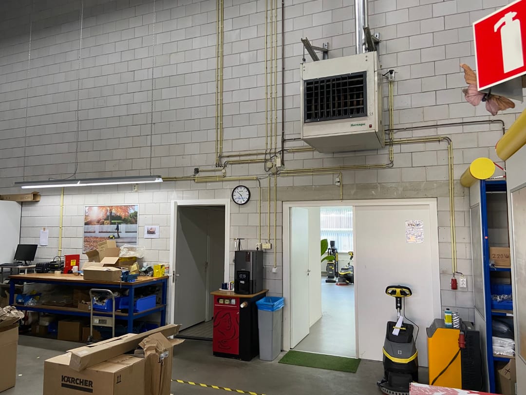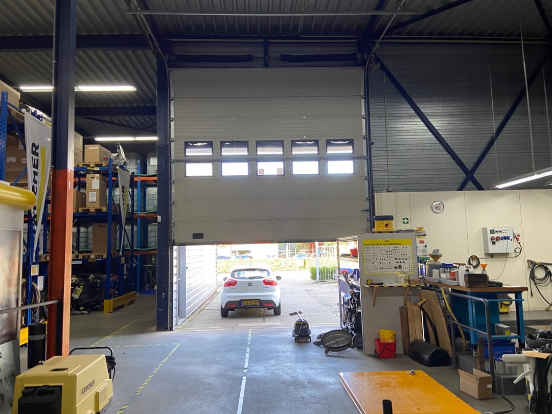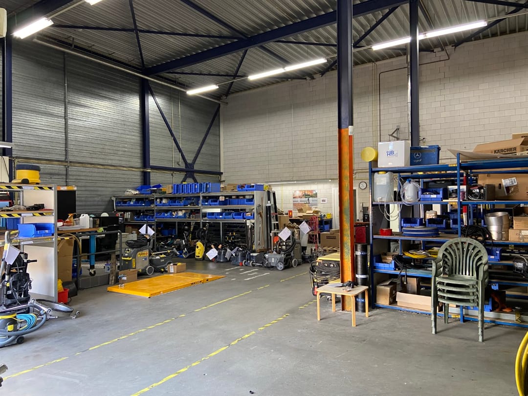 - Overheaddeuren, krachtstroom, betonvloer, heater, toilet, pantry, inbouwarmaturen en te openen ramen