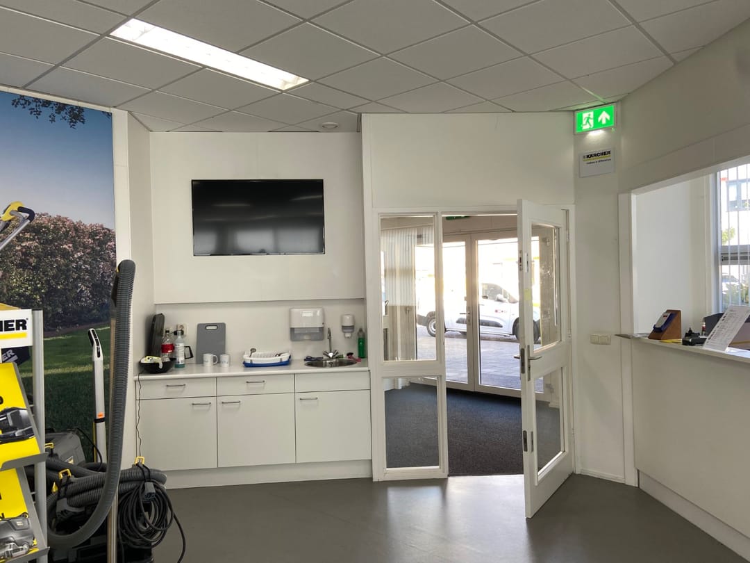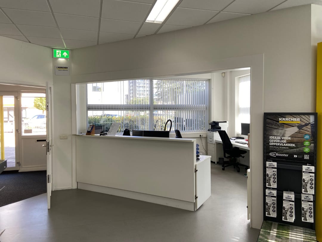 Via de zijentree komt u in de centrale entree en heeft u toegang tot de kantoren/showroom op de begane grond en de kantoren op de 1e verdieping. De bedrijfshal is intern bereikbaar alsmede via de overheaddeur aan de achterzijde. Het buitenterrein aan de achterzijde is voorzien van een Heras hekwerk. Parkeren kan op eigen terrein en daar treft u minimaal 13