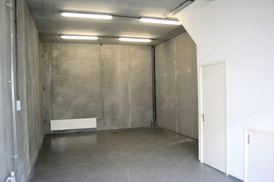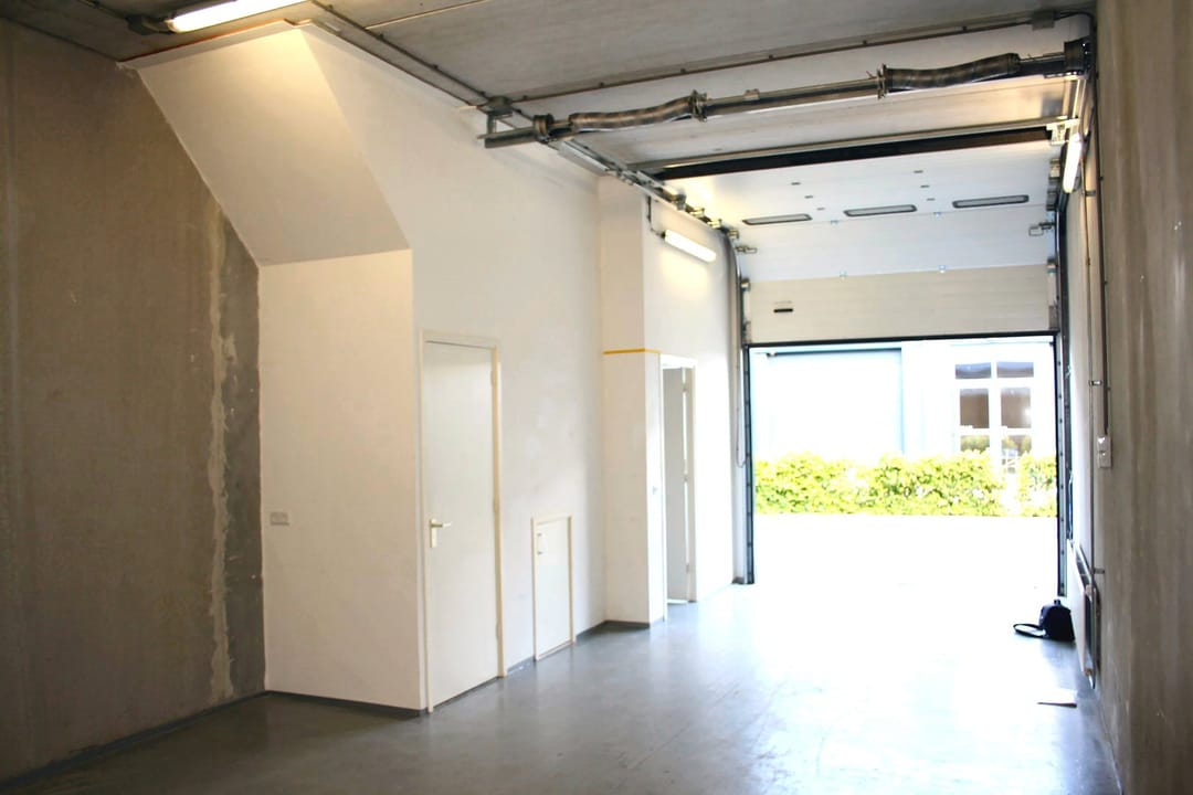 - Overheaddeuren, betonvloer, toilet, pantry, inbouwarmaturen en te openen ramen