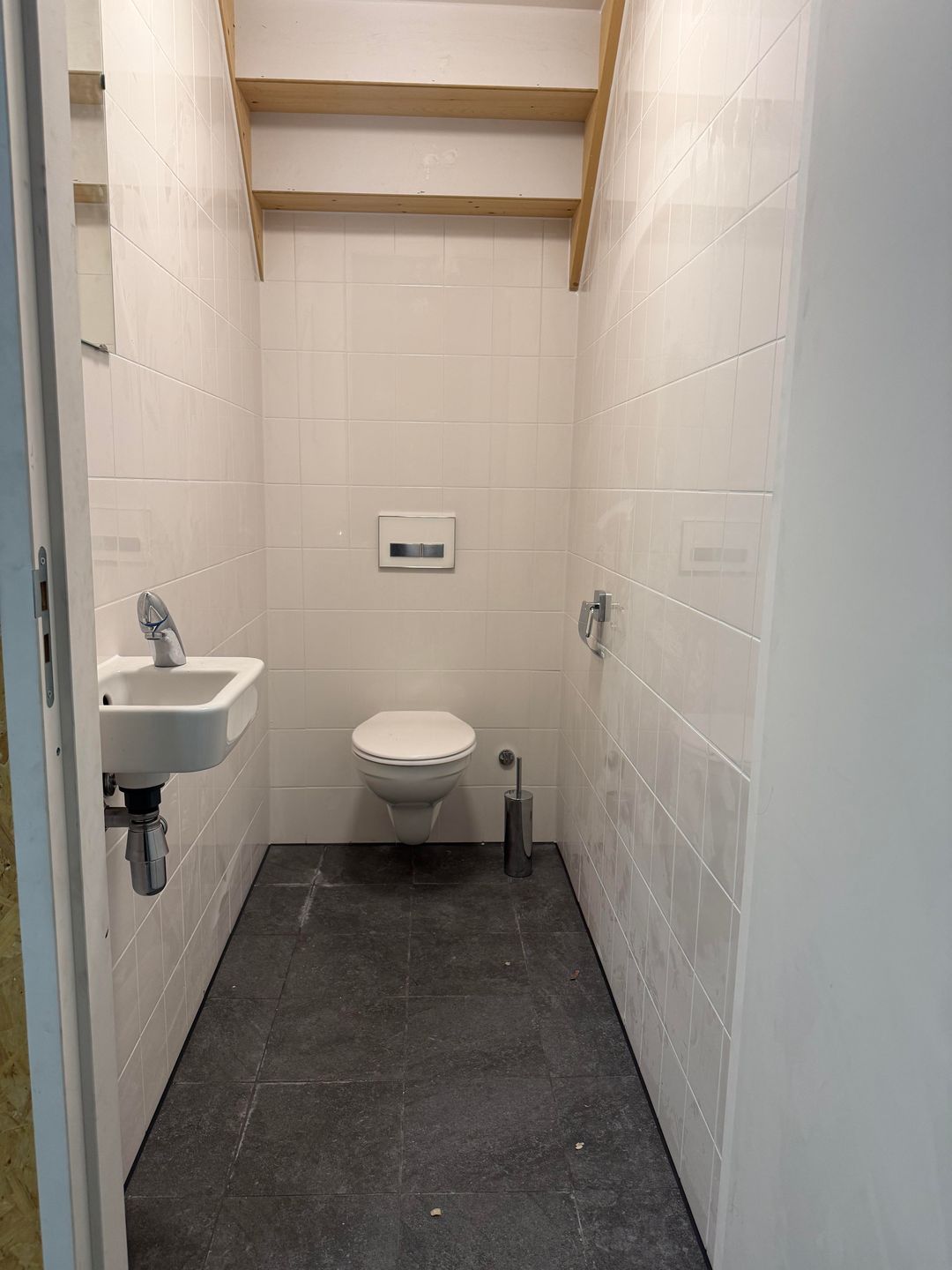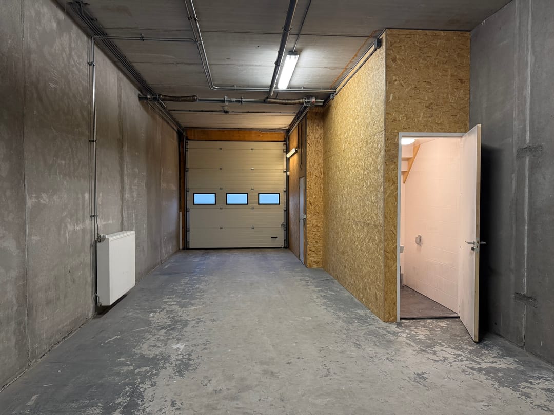 - Overheaddeuren, betonvloer, toilet, pantry, airconditioning, inbouwarmaturen en te openen ramen