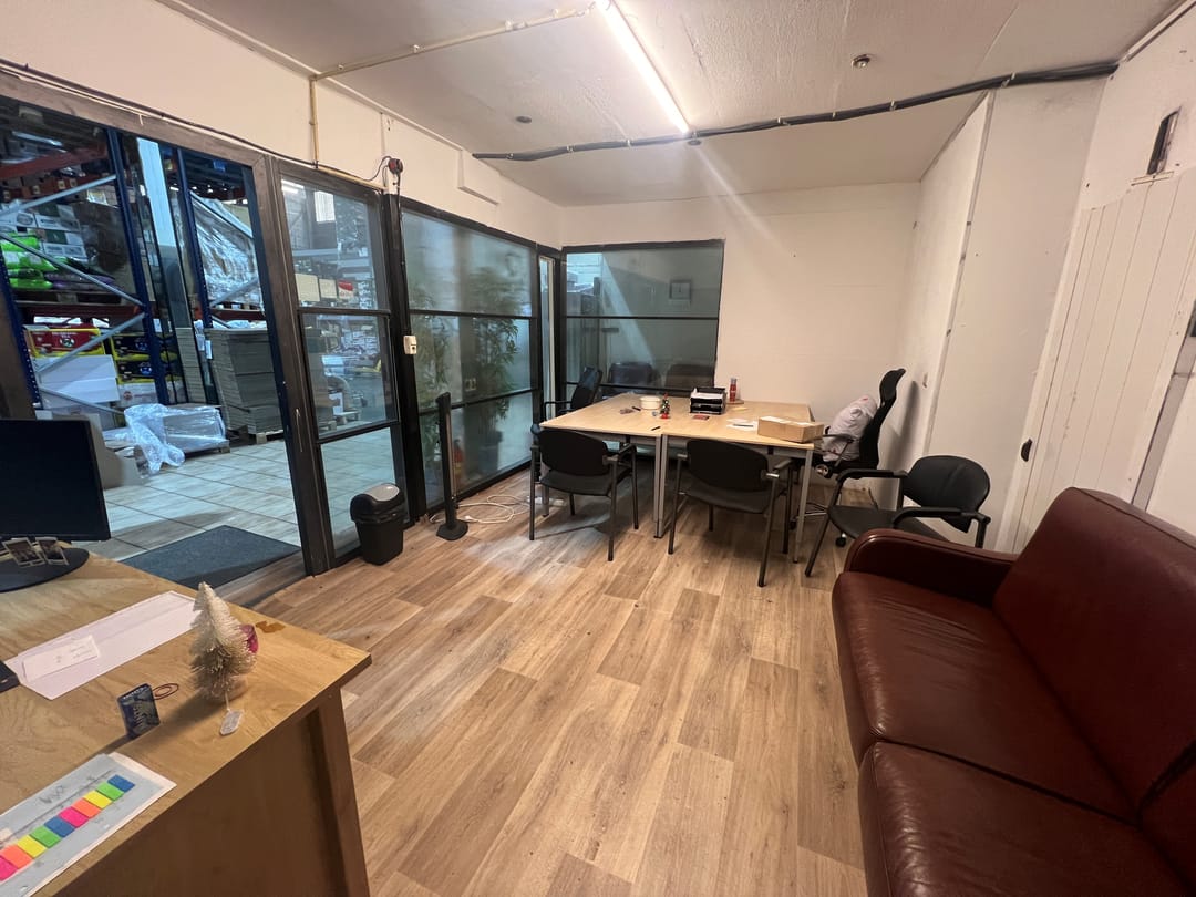 Entree middels overheaddeur met loopdeur, bedrijfshal, kantoorruimte, pantry en toilet.