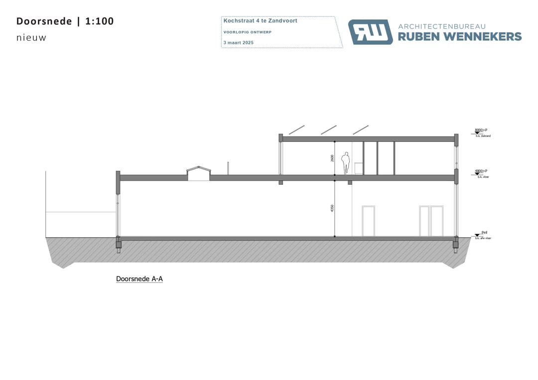 Bedrijf hoogte = ca. 4,35 meter | Wonen hoogte = ca. 2,60 meter