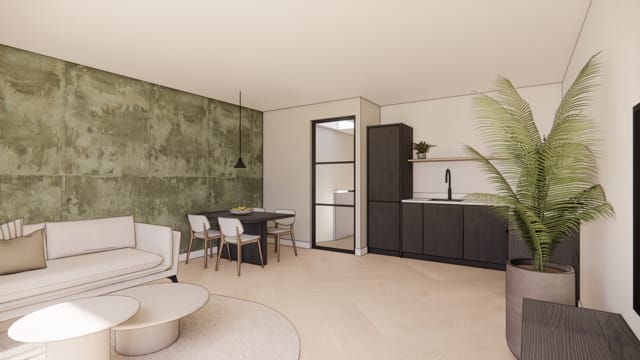 De bovenliggende verdiepingen zijn uitgevoerd als volwaardige en energiezuinige appartementen (A++) met een royaal dakterras, veel lichtinval en een hoogwaardig afwerkingsniveau.