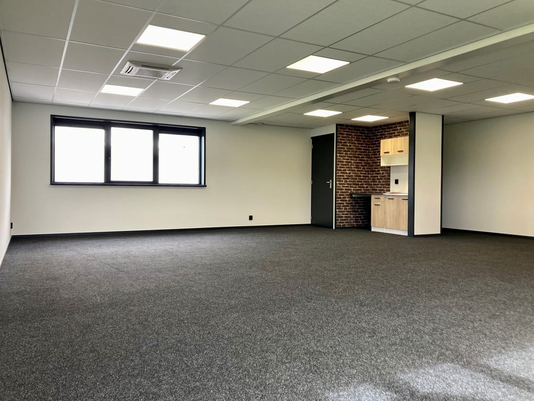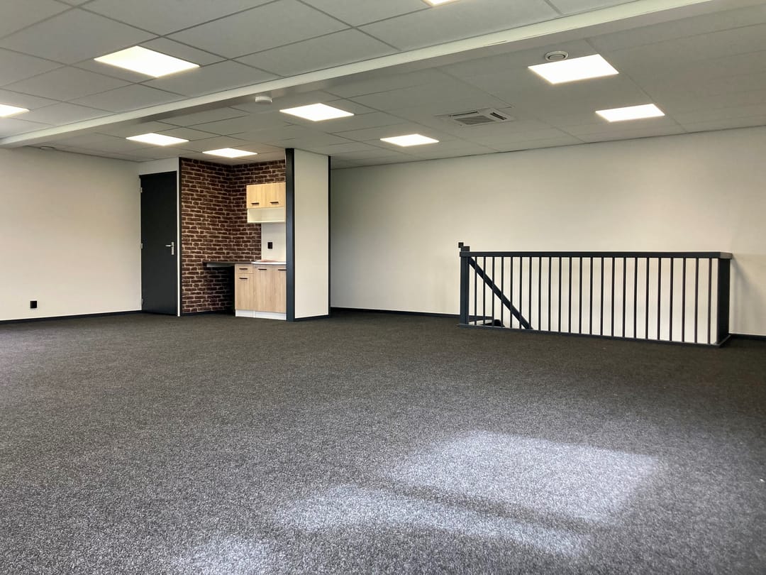 Op de 1e etage is een hoogwaardig afgewerkte kantoorruimte van 70 m², voorzien van pantry en toilet. De ruimte beschikt over een verwarming middels airco, een luchtverversingsinstallatie, een systeemplafond met verlichting, afgewerkte wanden en vloer voorzien van vloerbedekking. Kortom, een representatief kantoor.