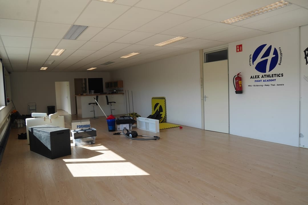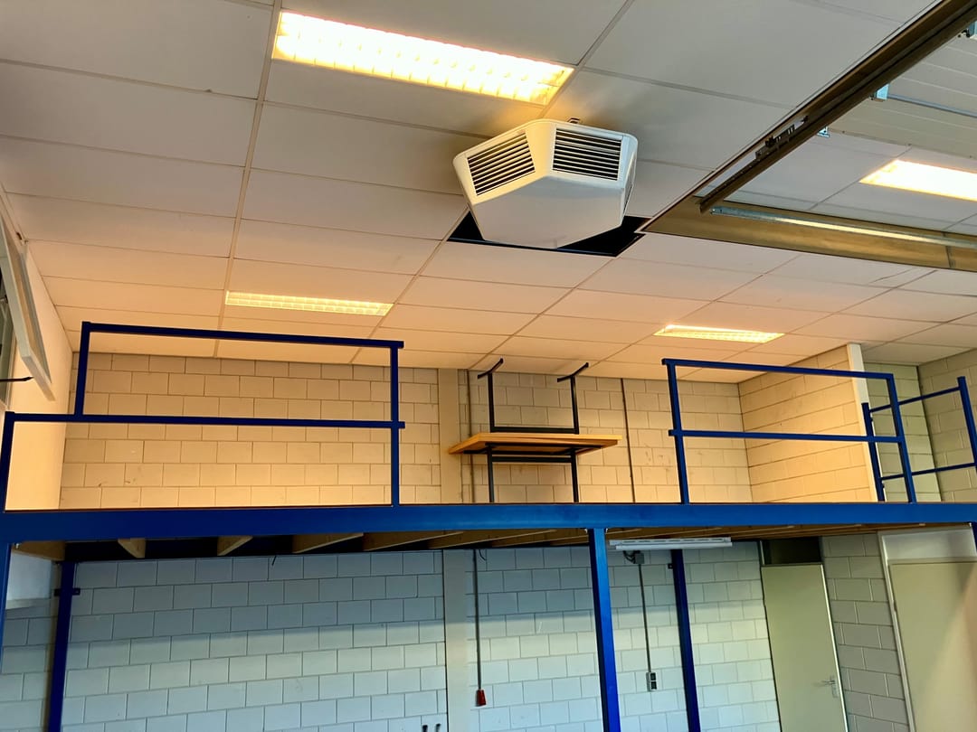 Via de zijkant van het gebouw is toegang tot de 2e bedrijfsruimte welke momenteel leeg staat. De huurder is er net uit, maar in verband met de verkoop hebben we nog geen nieuwe huurder gezocht, niet wetende wat de nieuwe eigenaar met het pand wilt gaan doen. Deze ruimte is voorzien van een hal, een pantry, een toilet, een entresol en een kantoor. De totale BVO op de begane grond is 225 m².