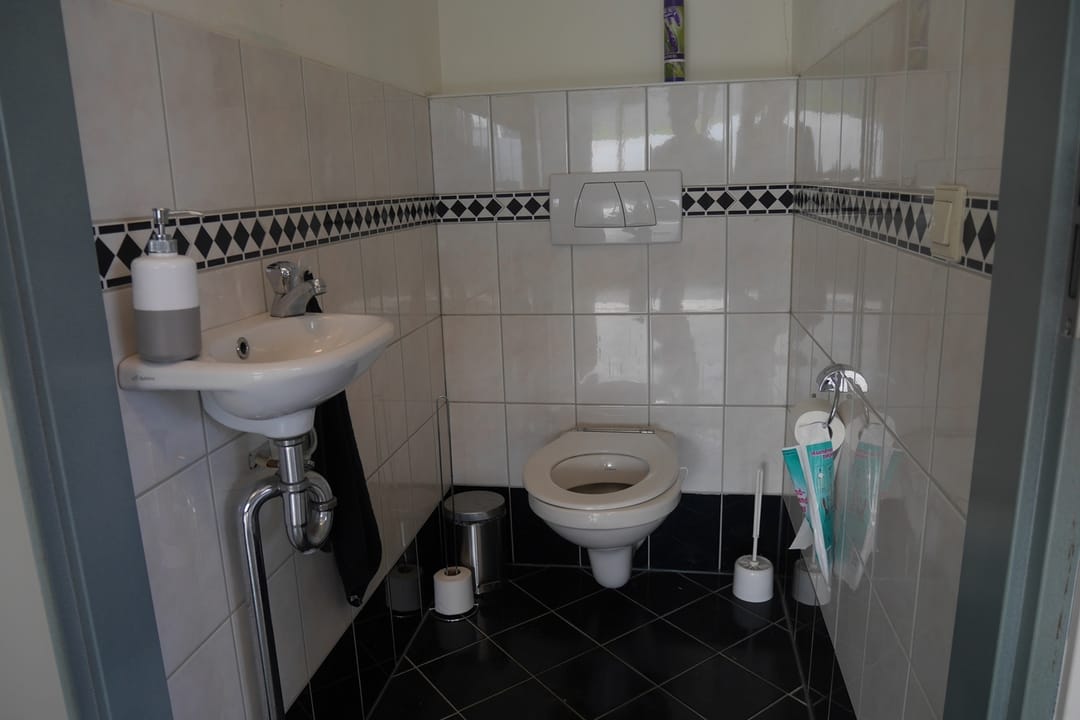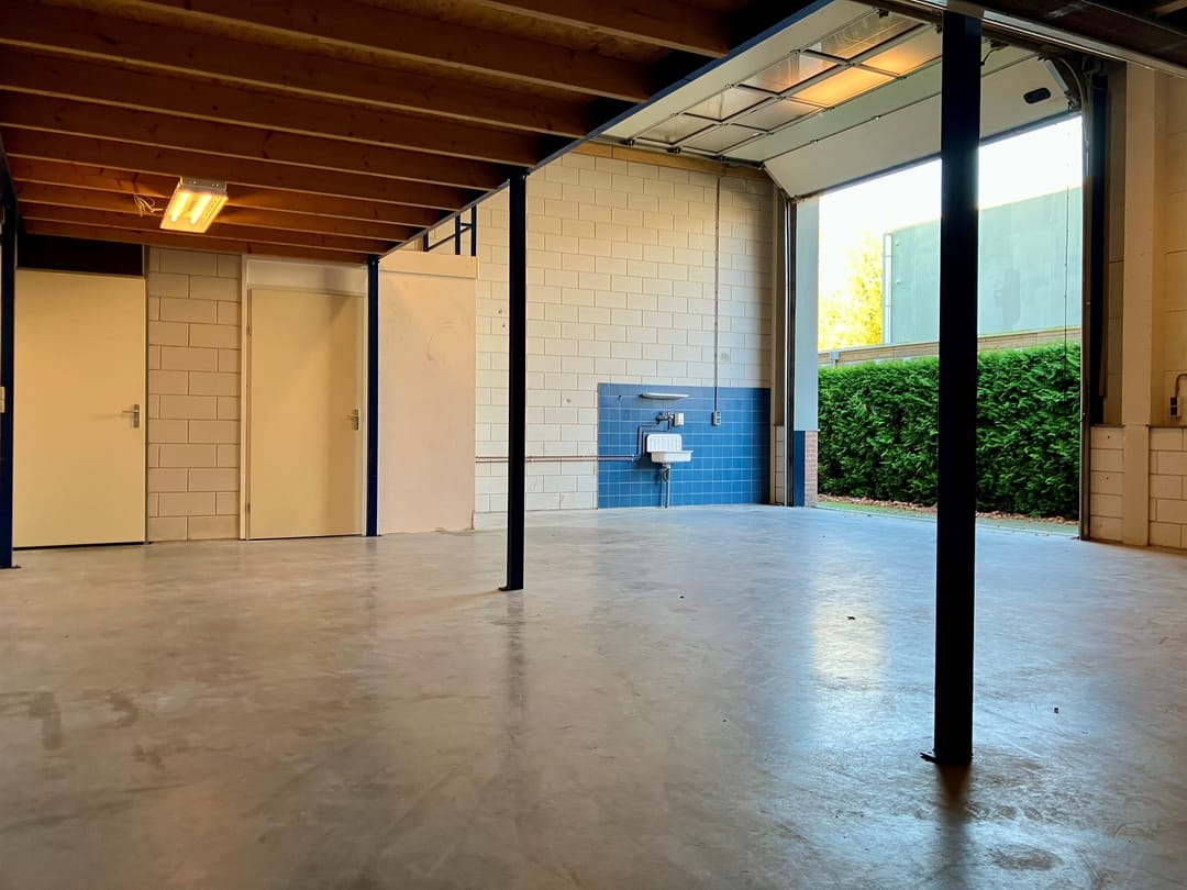 - Overheaddeuren, betonvloer, toilet en te openen ramen