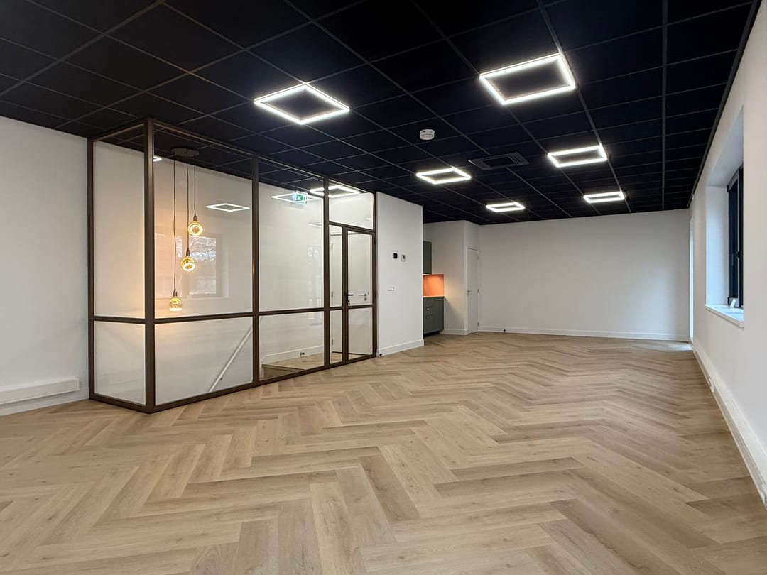 Voor de verhuur is deze prachtige turn-key, op de hoek gelegen bedrijfs-/kantoorruimte beschikbaar. De ruimte heeft een vloeroppervlak van in totaal circa 164 m² BVO, welke is verdeeld over twee bouwlagen. Doordat het object op de hoek is gelegen, heeft het vele grote raampartijen en is de ruimte enorm licht. De eigenaar heeft het object volledig ingebouwd waardoor de ruimte direct is te betrekken.