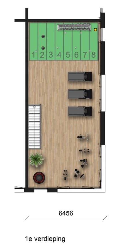 - Airconditioning, betonvloer, toilet en pantry