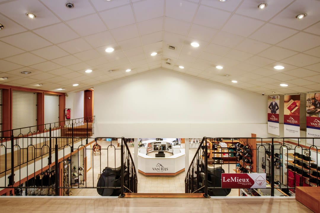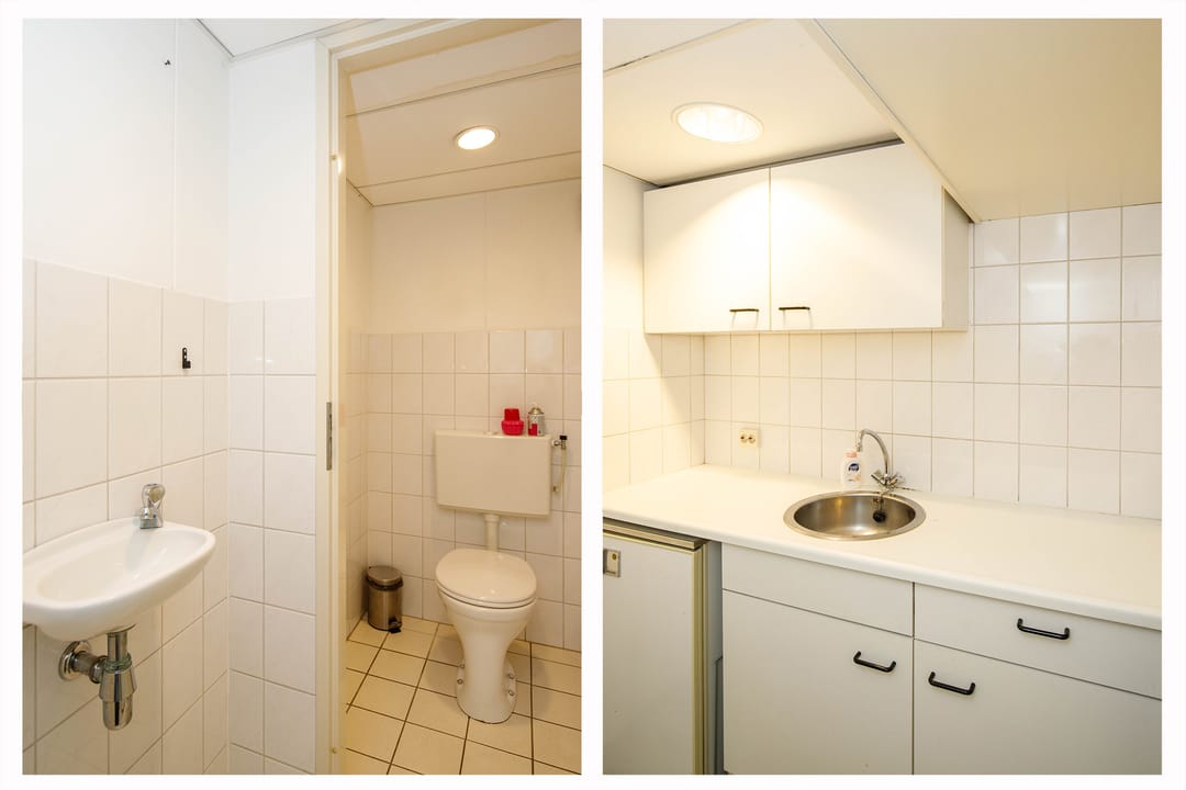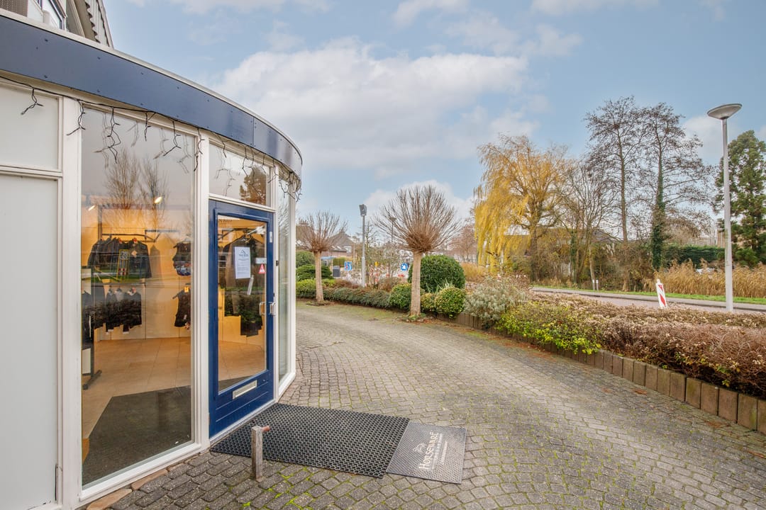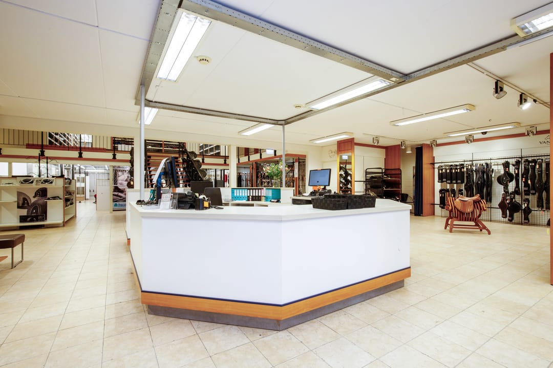 Vanaf de straatzijde is de ingang tot de winkel aan de voorkant van het pand. Opvallend is de halve cirkel waar je binnen komt. Een echte entree! Voor je strekt zich de winkel met in het midden een centraal geplaatste trap naar de verdieping omgeven door een vide en een entresol. Links en rechts van de winkel tref je meerdere aparte ruimten die bijvoorbeeld dienst doen als berging, kantine, toiletten en een separate trapopgang naar de kantoren. De vide maakt dat de verdieping een fijne, open verbinding heeft met de winkel op de begane grond. Twee delen met één functie en praktisch in gebruik.