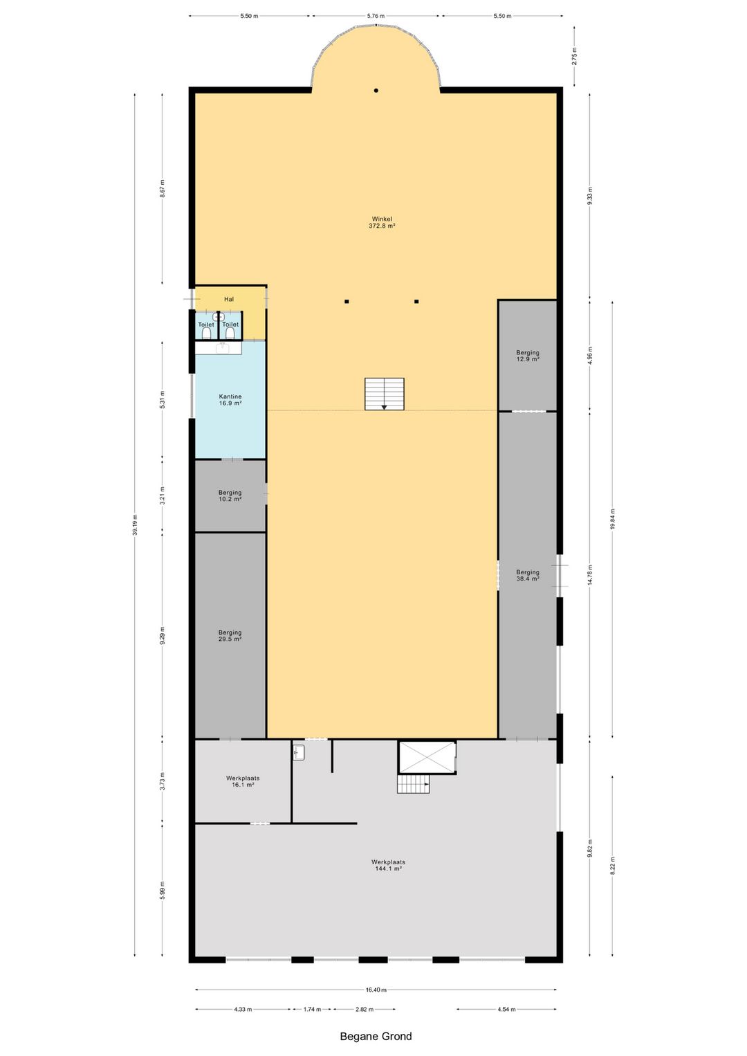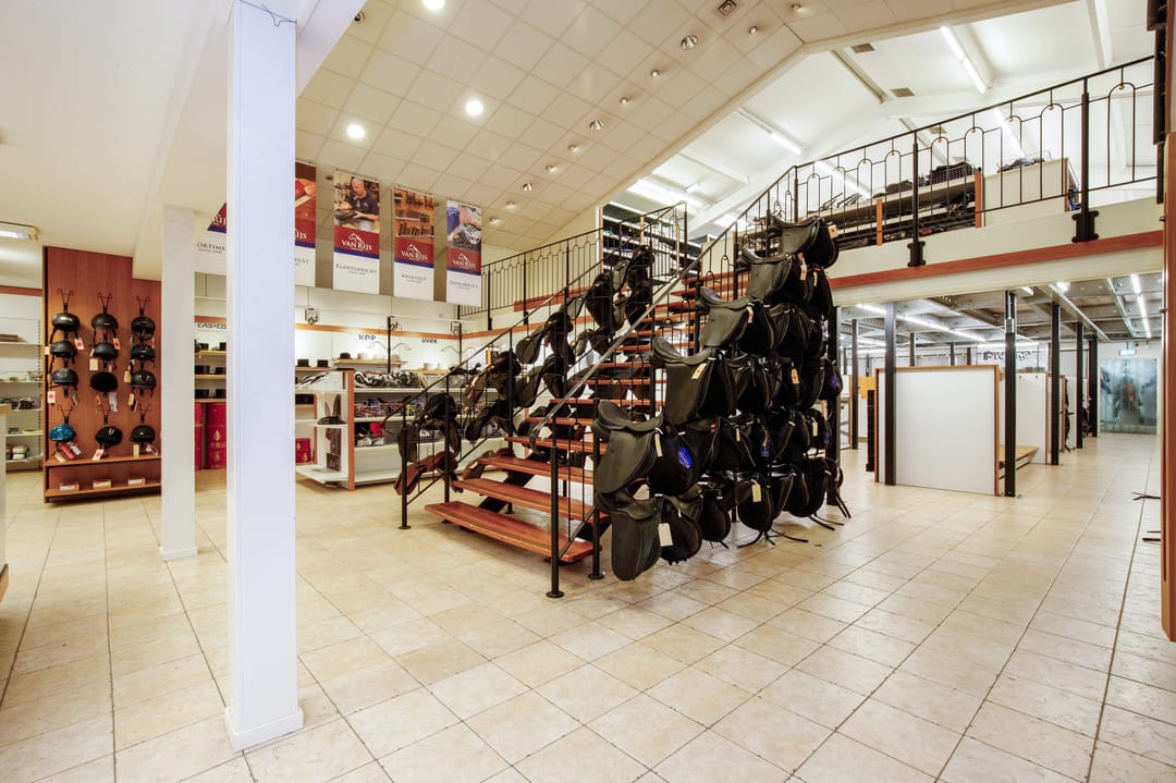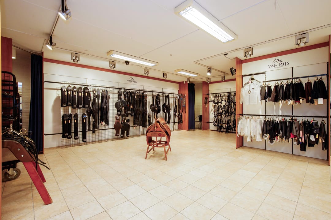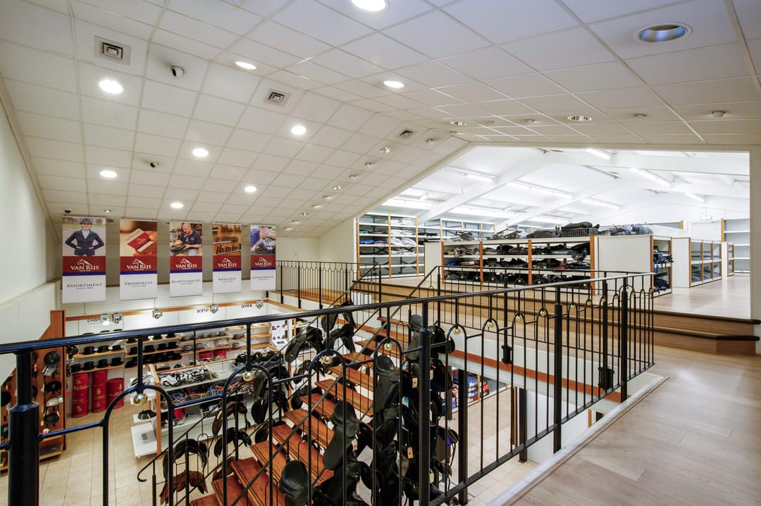 De showroom/winkel heeft op de begane grond een verkoopvloeroppervlakte van 373 m2 en extra bergruimte, kantine en toiletten van totaal 113 m2 en op de verdieping een verkoopvloeroppervlakte van 152 m2. De technische ruimten en de bergruimten onder het schuine deel van het dak zijn 114 m2.