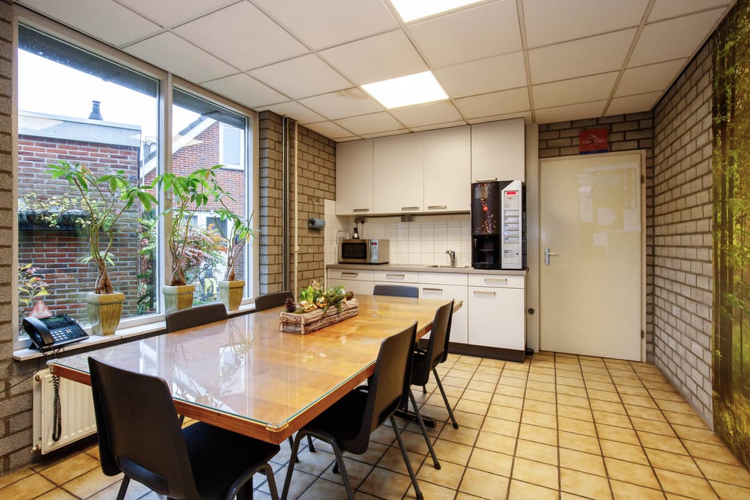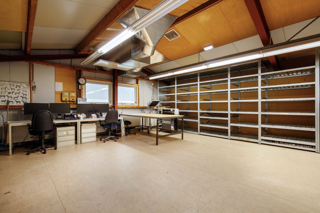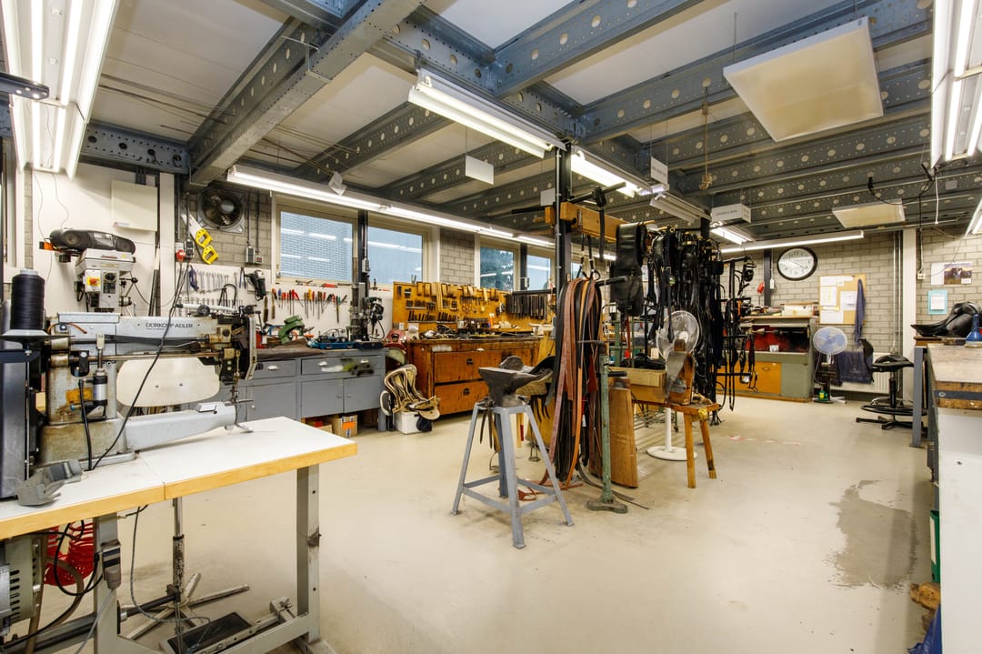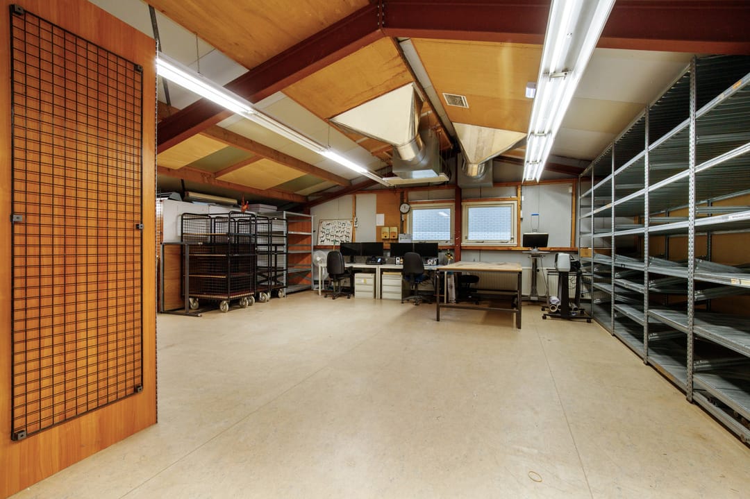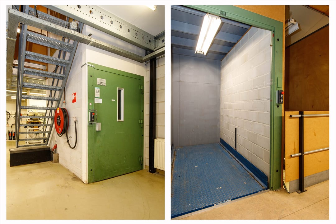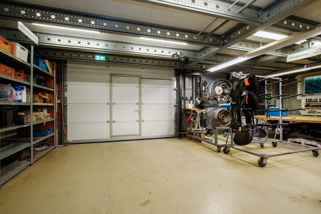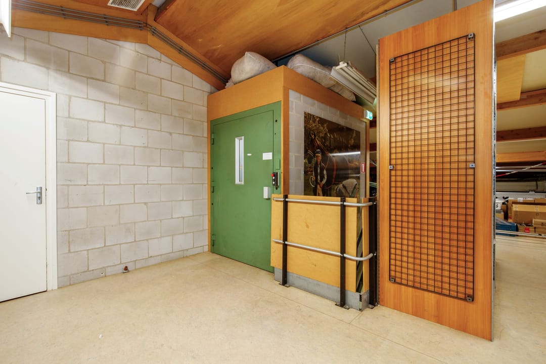 Achter de winkel tref je een werkplaats. Deze is uiteraard ook vanaf de straatzijde bereikbaar en heeft één overheaddeur. In deze werkplaats is de lift en een aparte trap naar de bovengelegen verdieping.