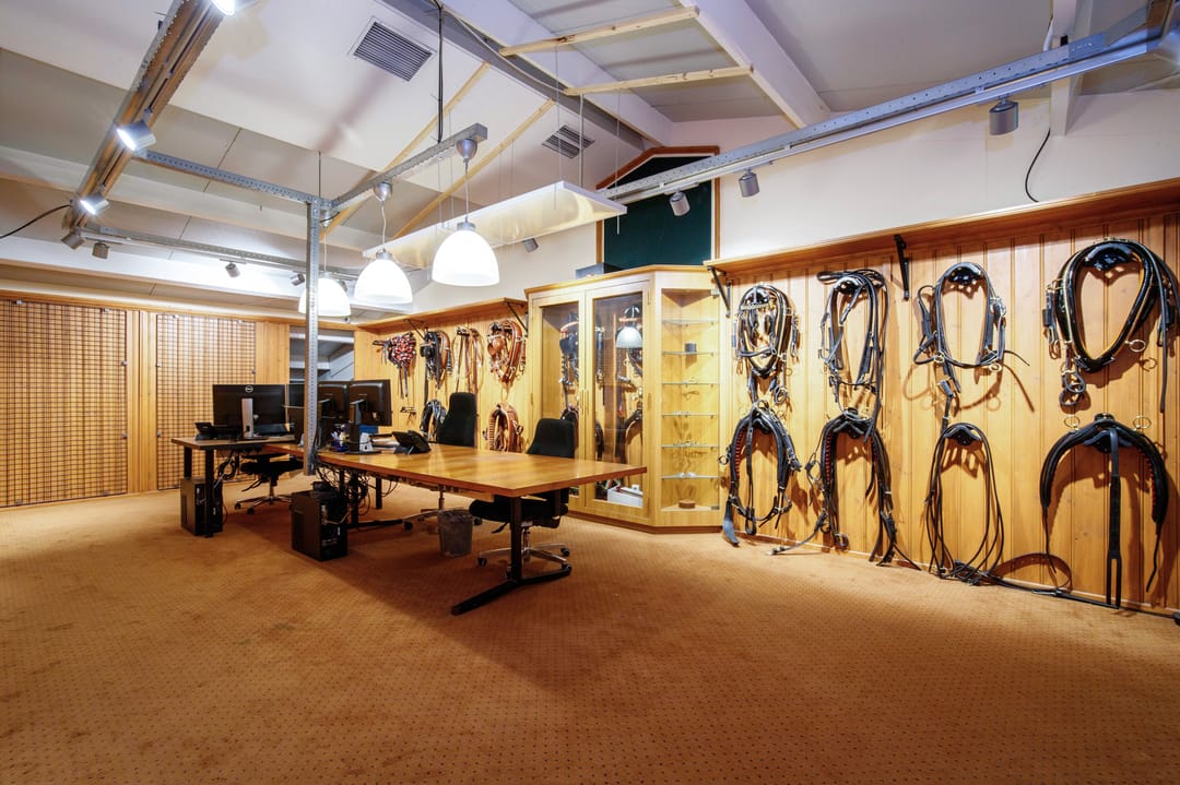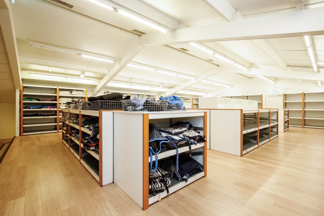 Tevens zijn er meerdere bergingen aan de zijkanten van het gebouw, net onder het schuine deel van het dak.