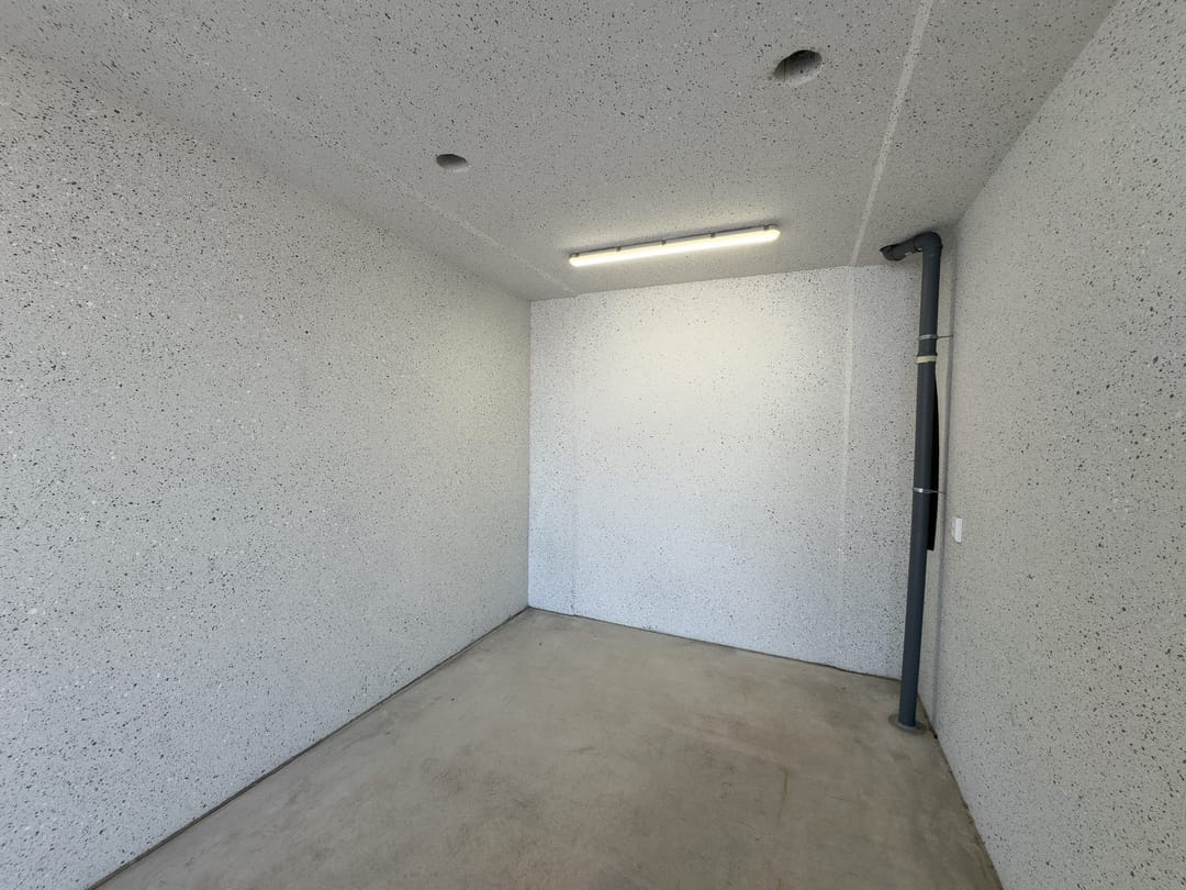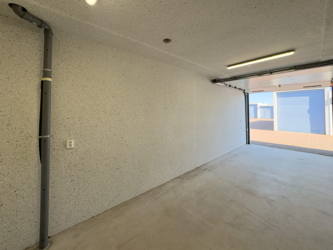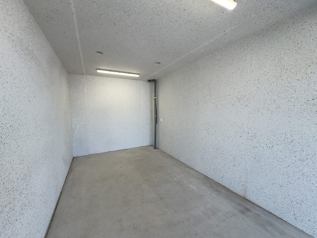 De unit is voorzien van verlichting, een elektrische aansluiting, 2 dubbele wandcontactdozen voor en achter en een handmatig bedienbare overheaddeur. De maatvoering maakt de ruimte geschikt voor diverse vormen van gebruik.