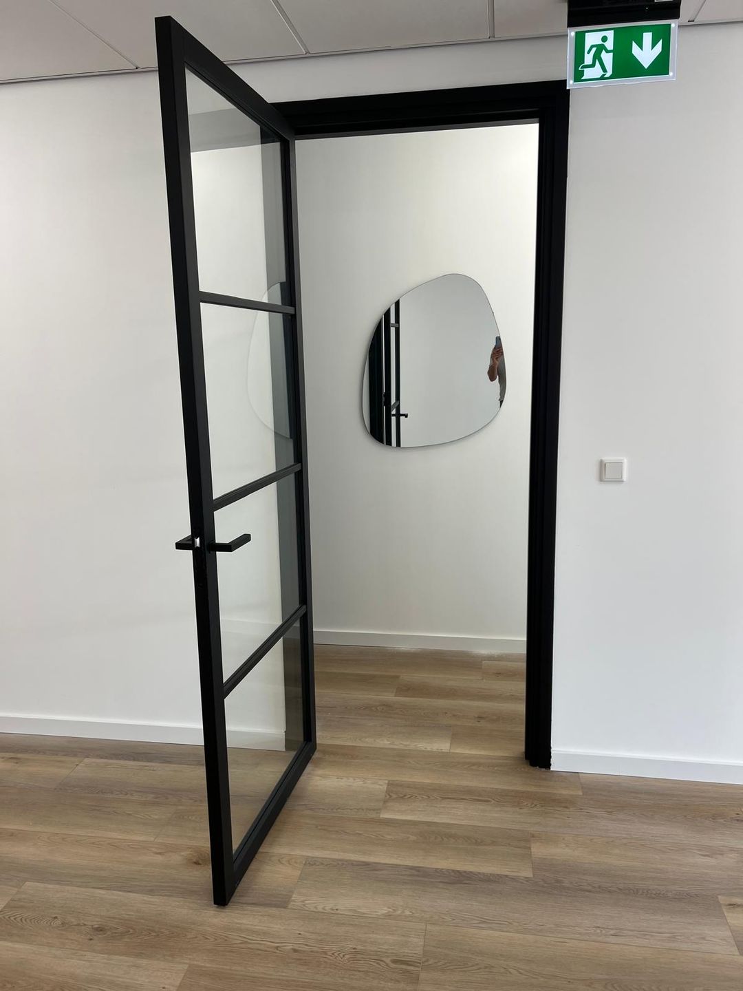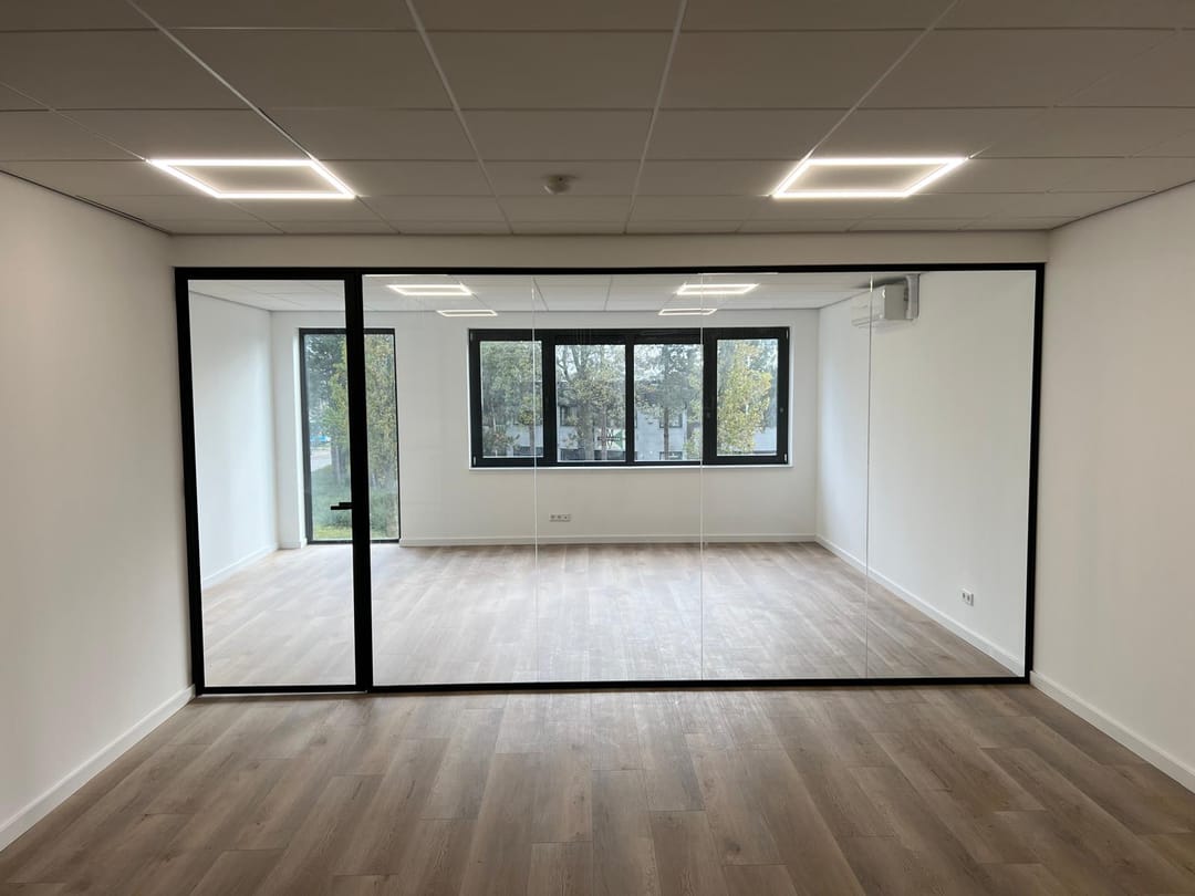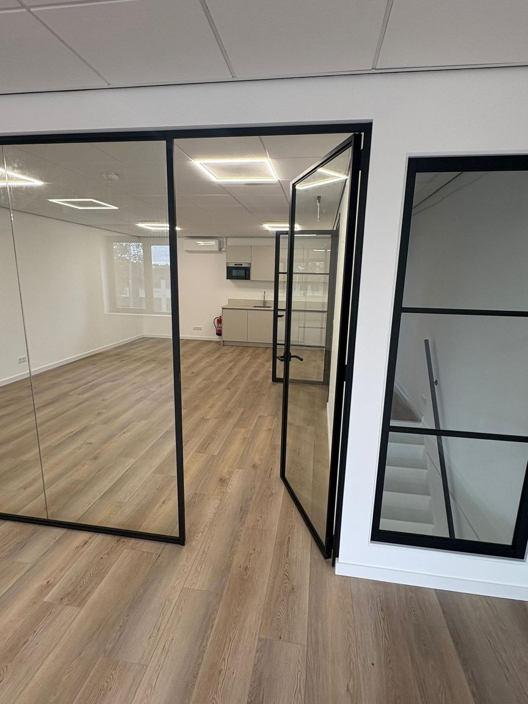 - ruimte gescheiden door glazen wand, waardoor een representatieve en lichte indeling ontstaat